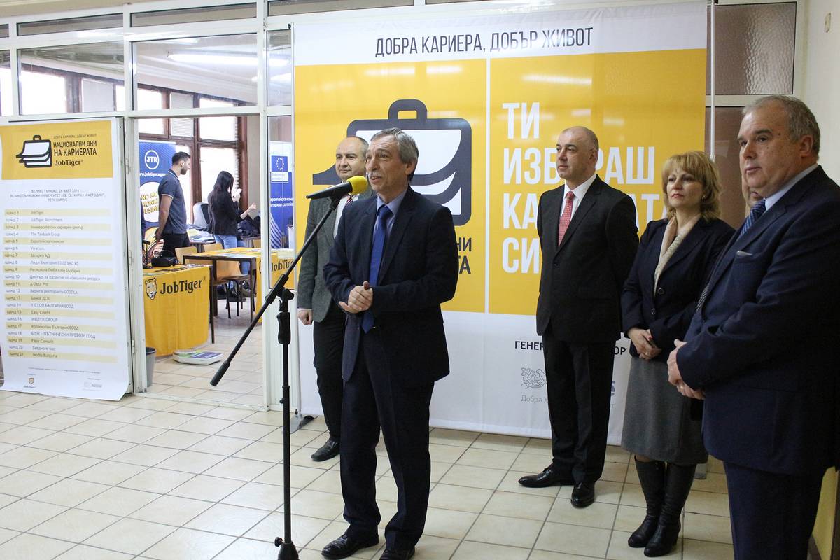 Над 22 компании, сред които имаше водещи български и международни фирми, подредиха свои щандове във Великотърновския университет. За 14-а поредна година старата столица беше домакин на Националните дни на кариерата. Най-големият форум за студентски стаж и кариера в страната срещна работодатели и студенти, за да предложи на младите специалисти подходящи работни и стажантски места на трудовия пазар в България.