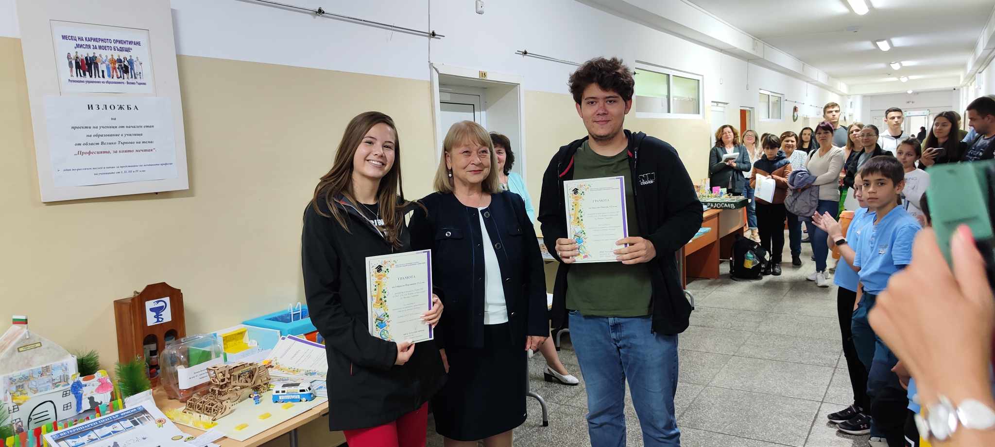 Двама ученици от Профилираната Хуманитарна гимназия – Велико Търново бяха отличени с грамоти за създаден от тях подкаст. Регионалното управление на образованието във Велико Търново отличи репортерите на училищната телевизия на “Тийн ТВ” Габриела Йорданова от 9 “А” клас и Преслав Минков от 12 “А” за създадения от тях училищен подкаст. Първият епизод е с журналиста от телевизия Видеосат Мирослав Дечев. С видео репортажа двамата гимназисти участваха в Месеца на кариерното ориентиране, който РУО организира за пета година.
