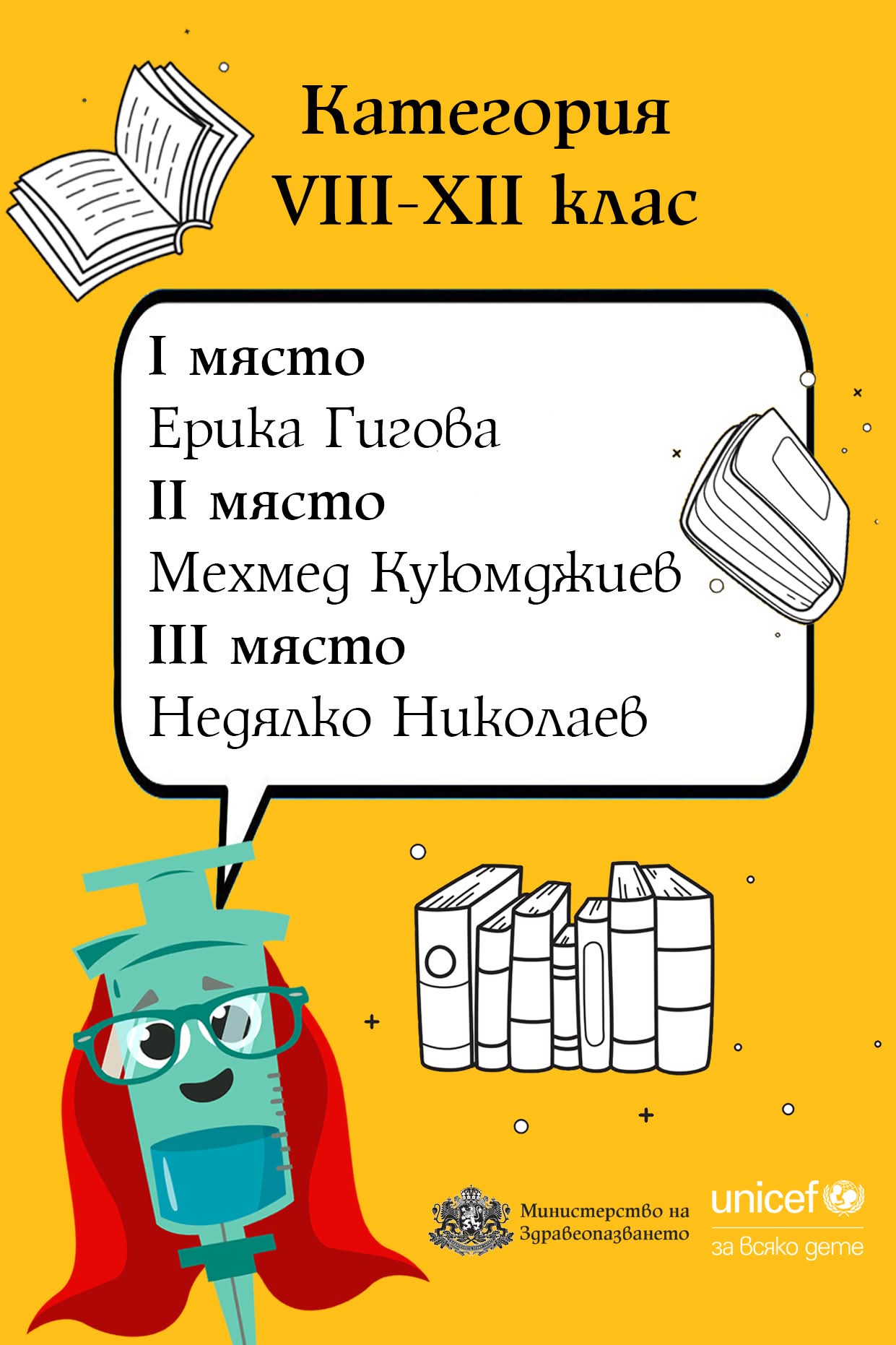 Мехмед Куюмджиев – ученик от Х „в“ клас на Старопрестолна професионална гимназия по икономика „Д-р Петър Аладжов“, завоюва второ място на национално ниво в конкурса за есе на Министерството на здравеопазването и УНИЦЕФ – „С думи срещу страха, с ваксини срещу болестта“.