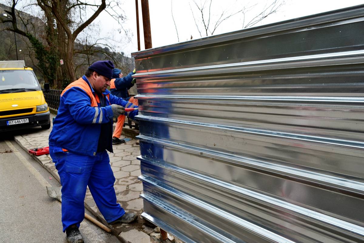 Обезопасена е тротоарната площ, която пропадна заради свличане на земна маса в района на археологическите разкопки южно от църквата „Свети Четиридесет мъченици“. Участъкът се намира на улица „Св. Климент Охридски“, над зидовете от манастирския комплекс „Великата Лавра“. Той е част републиканския третокласен път III-514.