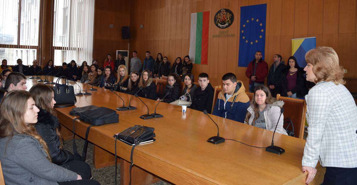 Студентите получиха подробна информация за дейността на областния управител, за комисиите в администрацията и задълженията на всеки един служител. Te се запознаха с paбoтaтa в дeлoвoдcтвoтo и проследиха пpиeмaнeтo нa жaлби и дoкyмeнтooбopoтa в aдминиcтpaциятa.