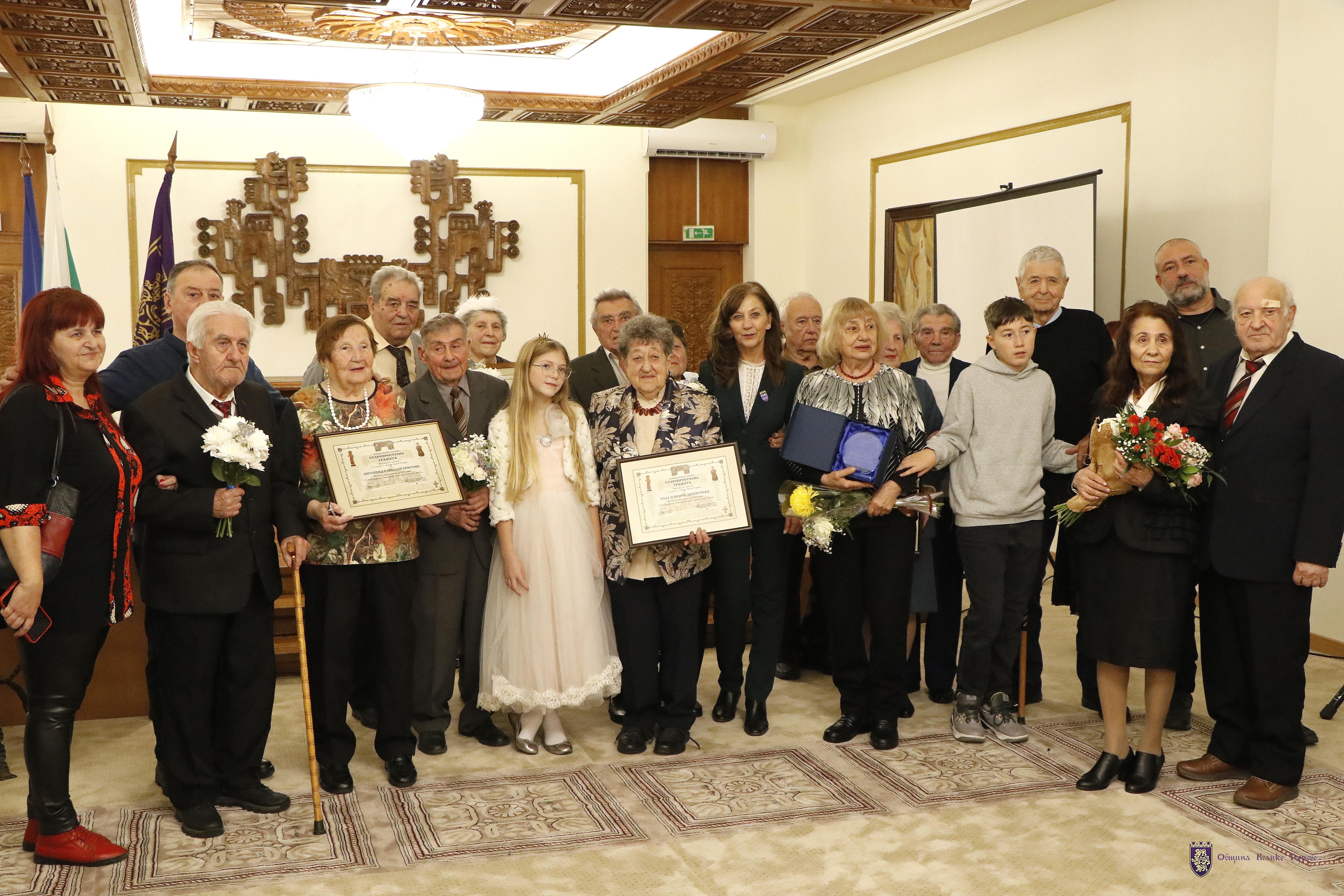 Със специални грамоти и плакети Панов отличи семействата за 60-годишнината от сключването на граждански брак. „Вие давате прекрасен пример на цялото ни общество кое е най-важното в човешкия живот – семейството, сплотеността и единството, семейните ценности, в които всички ние сме възпитани и които сме призвани да предаваме на идните поколения“, обърна се Даниел Панов към двойките.