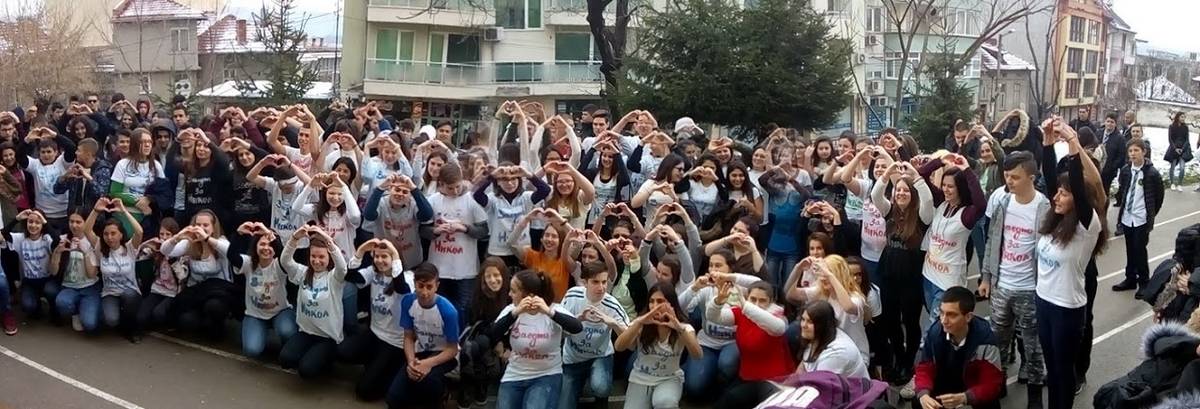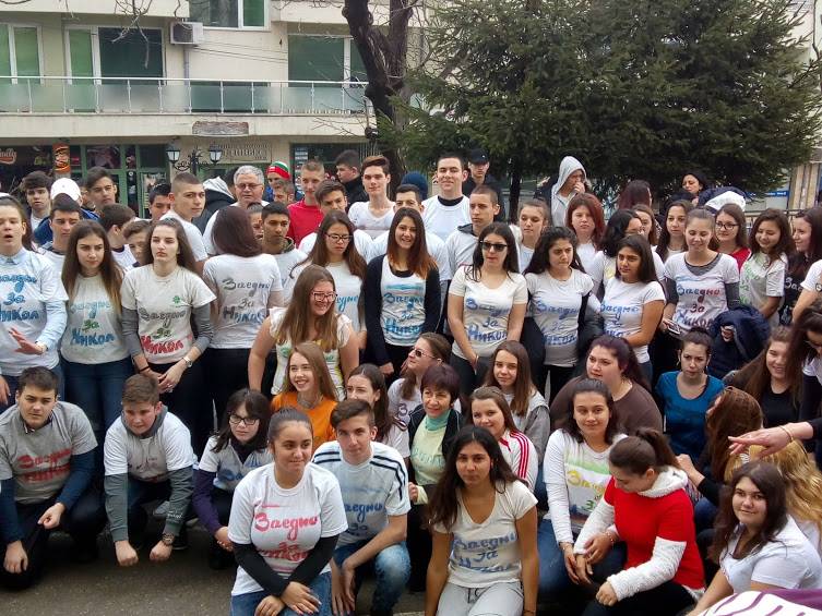 Инициативата е на момчетата и момичетата от класа на 14-годишната Никол Георгиева, която се бори със заболяването Сарком на Юинг. В знак на съпричастност и подкрепа, учители и ученици облякоха за празника на училището си тениски с надпис „Заедно за Никол”. В продължение на няколко дни младежите сами щамповаха с шаблони и спрейове своите тениски.