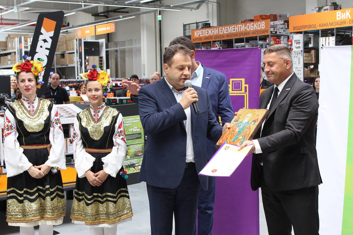 Кметът на Велико Търново Даниел Панов подари икона на св. Николай Чудотворец на собственика на веригата и му благодари, че с изграждането на обекта са разкрити 100 нови работни места, а средната заплата в магазина е 1000 лв. В приветствието си градоначалникът подчерта, че старата столица е на седмо място по икономически растеж в страната и на четвърто по раждаемост и увеличаване на населението, по усвояване на европейските проекти градът също е в челните места.