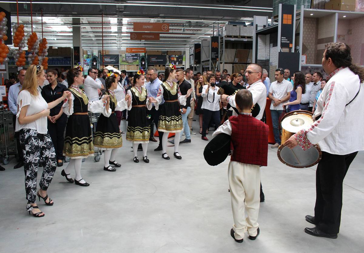 Официалното откриване на магазина завърши прерязване на лентата и впечатляващи фолклорни изпълнения.