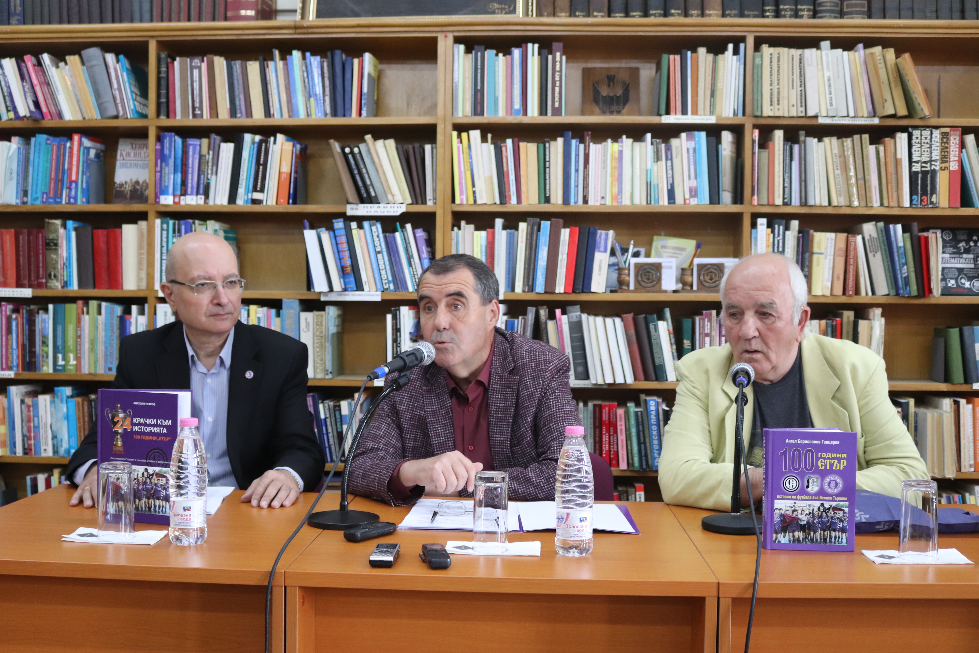„Тъй като сме в сферата на футбола, тази приятелска среща трябва да бъде водена от Петко Павлов“, каза при откриването домакинът на проявата д-р Иван Александров. Двете книги бяха представени именно от спортния журналист и бивш футболен съдия, който подчерта, че двете издания се допълват взаимно и представят пълноценно картината за тези 100 години на „Етър“. “Ако в едната е пълната статистическа история на отбора, в другата е неговата романтична история. Хубаво е двете книги да присъстват в библиотеката на всеки, който обича „Етър“, заяви Павлов и запозна присъстващите с богатите биографии на двамата автори.