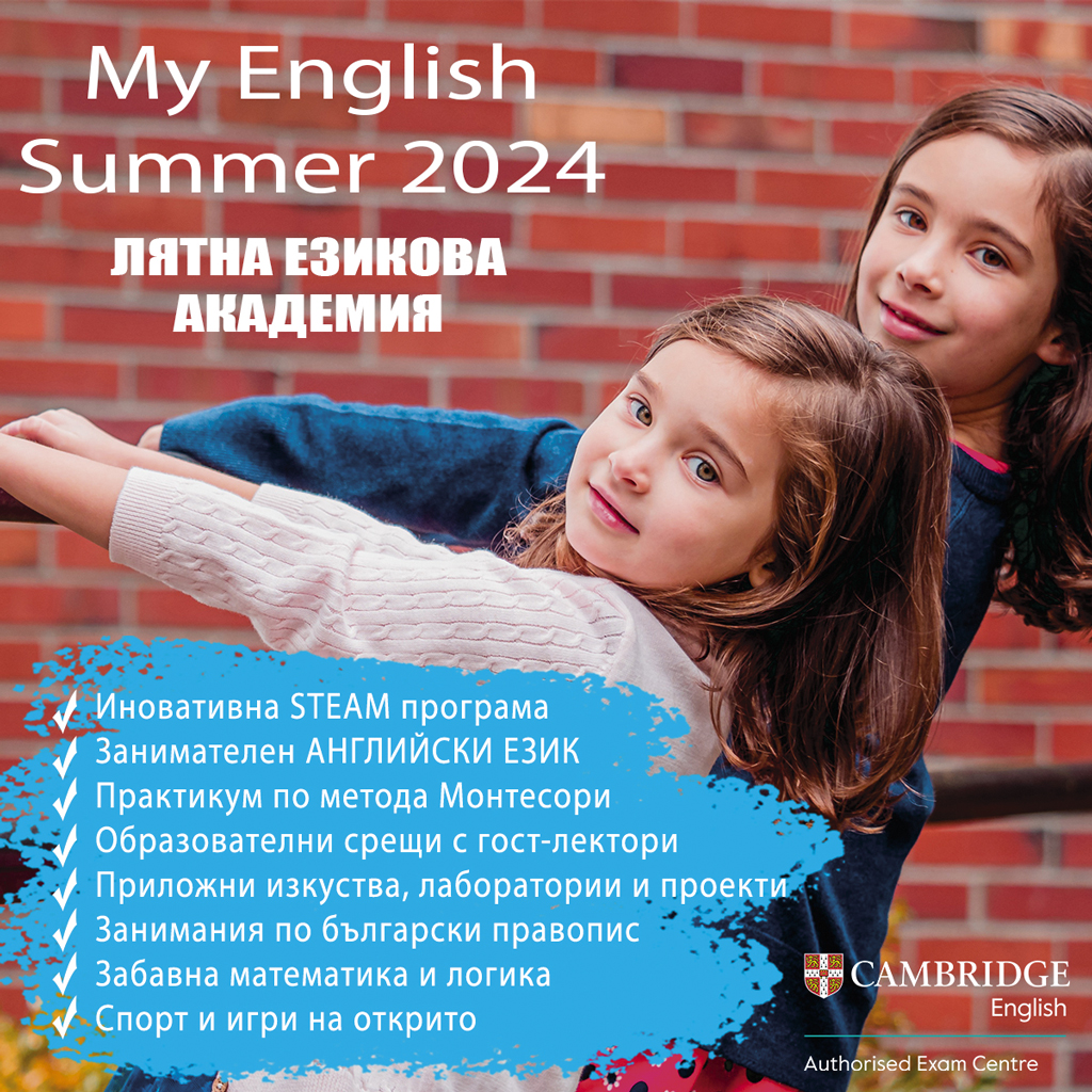 Училища ЕВРОПА Велико Търново представят седмото издание на ЛЯТНА ЕЗИКОВА АКАДЕМИЯ “MY ENGLISH SUMMER” 2024 за деца от 1 до 4 клас ОТ 10 ЮНИ ДО 31 ЮЛИ.