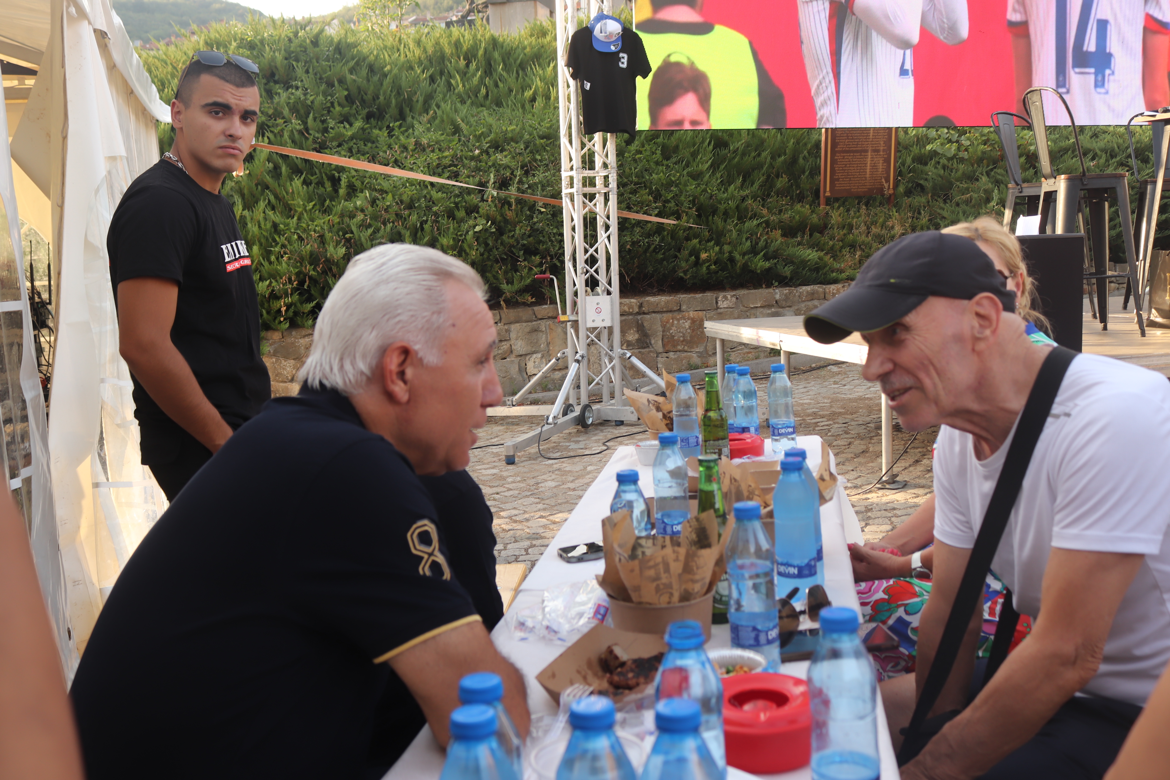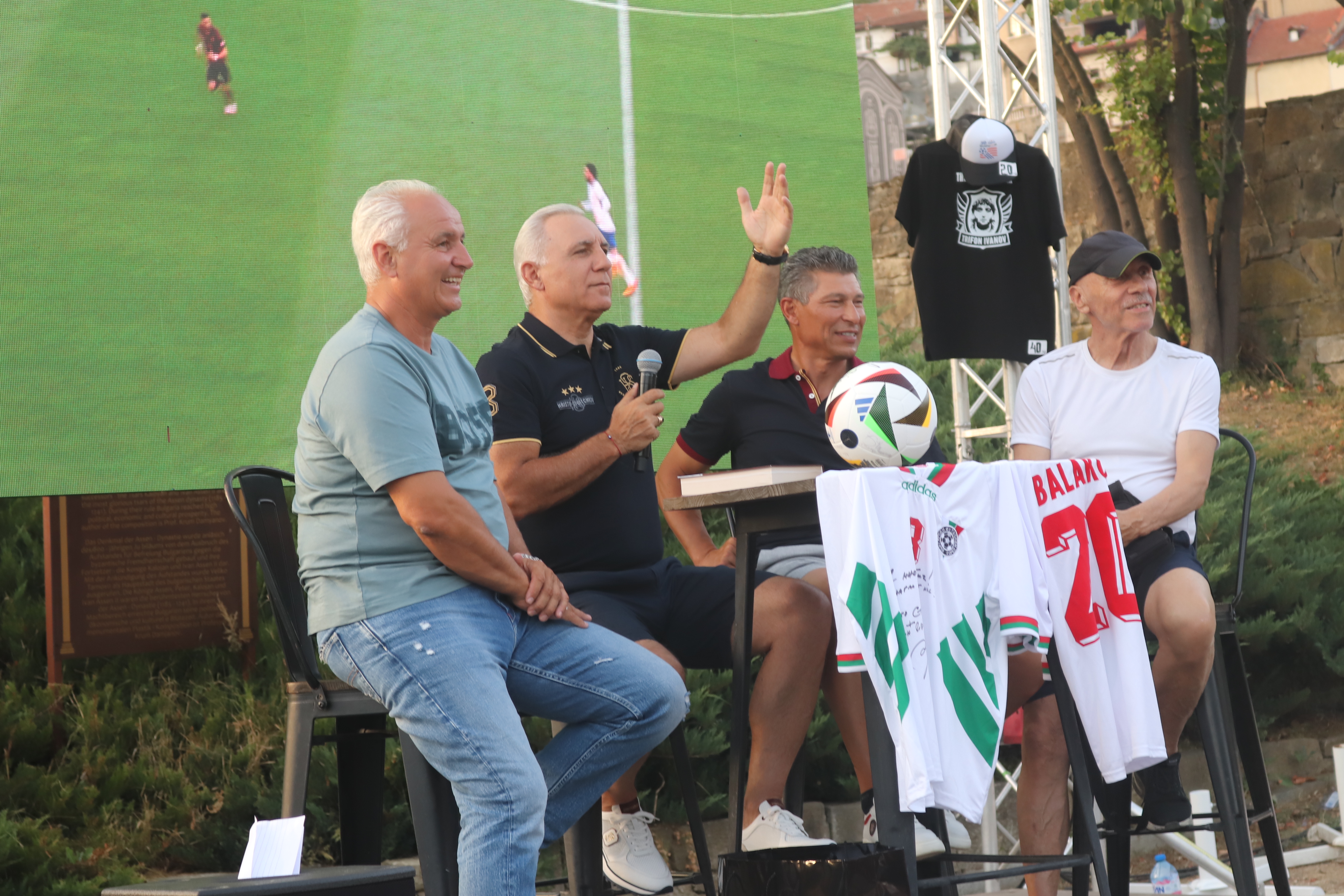 Стотици футболни запалянковци посрещнаха звездите Стоичков, Балъков и Генчев. По-късно към тях се присъедини и не по-малко легендарния треньор Георги Василев. Тримата звездни футболисти не скриха вълнението си, когато стана дума за колегата им Трифчо, както те го наричали помежду си. „Идеята за издигане на паметник на Трифон Иванов е една прекрасна инициатива. Нашето приятелство с него беше още от 80-те години и беше много силно. Когато дойде в София, Трифон каза, че идва да стане шампион на България. И още на следващата година стана. Беше много сърцат, винаги усмихнат и готов винаги да помогне. Семействата ни бяха приятелски, децата ни пораснаха заедно. А след това бяхме двамата и в Испания. За съжаление Трифчо ни напусна много млад. Но той е винаги с нас. И днес ние трябва да му отдадем дължимото“, каза видимо силно развълнуван Камата. „Той беше истински мъжкар и брутално добър футболист, железен защитник. Трифка, ти си не само в нашите сърца. Ти ще останеш завинаги в историята на европейския и на световния футбол“, сподели Бончо Генчев. „С Трифчо минаха младежки ми години. Единственото, което можем да направим за него сега е да не го забравяме. Той трябва да остане идол за нашите млади таланти. Нека бъдем съпричастни в реализирането на това хубаво и трогателно дело“, сподели Красимир Балъков. Към тримата се присъедини и треньорът Георги Василев. „Вие тримата и Трифон бяхте съпричастни към най-великото постижение на българския футбол. Аз също бях съпричастен към вашите успехи. Тъгуваме за нашия велик футболист Трифон Иванов, но аз съм сигурен, че сега той ни гледа отгоре“, каза Гочето.