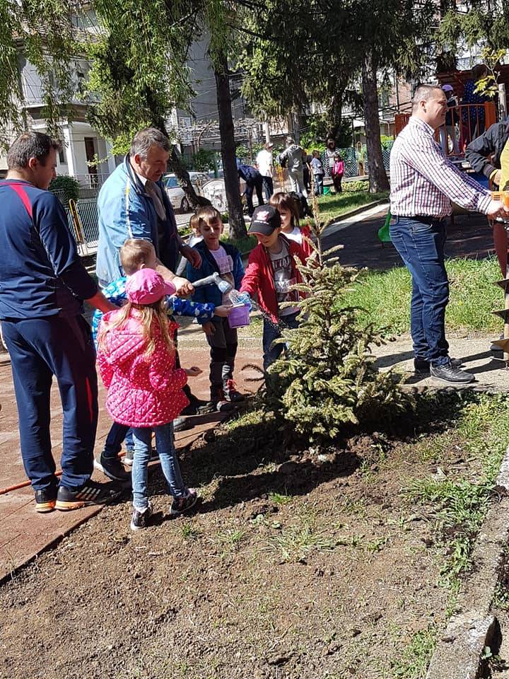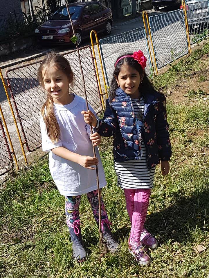 „Част от родителите събраха средства за закупуването на 60 броя храсти, други пък донесоха разнообразни растения и цветя. Борчета и туи също красят двора на градината, а почвата за залесяването бе подготвена от татковците на малчуганите. През почивните дни един от родителите дори пое ангажимент да подкастри всички храсти и дървета в района на детската градина”, сподели директорът Жаклин Харалампиева-Павлова. Тя отправи специална благодарност към родителите за тяхната активност. “В Деня на Земята, изказваме нашата благодарност към наш родител, Кристиян Дончев, и неговия екип, за отделеното време, през почивните дни, за цялостно почистване на дърветата, от изсъхнали и опасни клони, в двора на детската градина”, каза още госпожа Павлова.