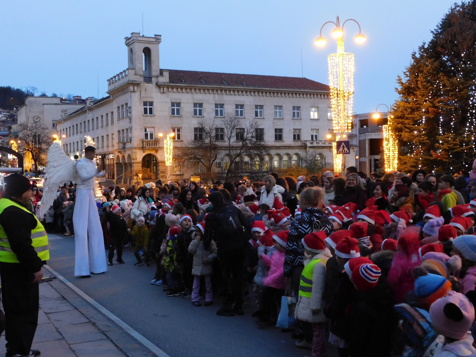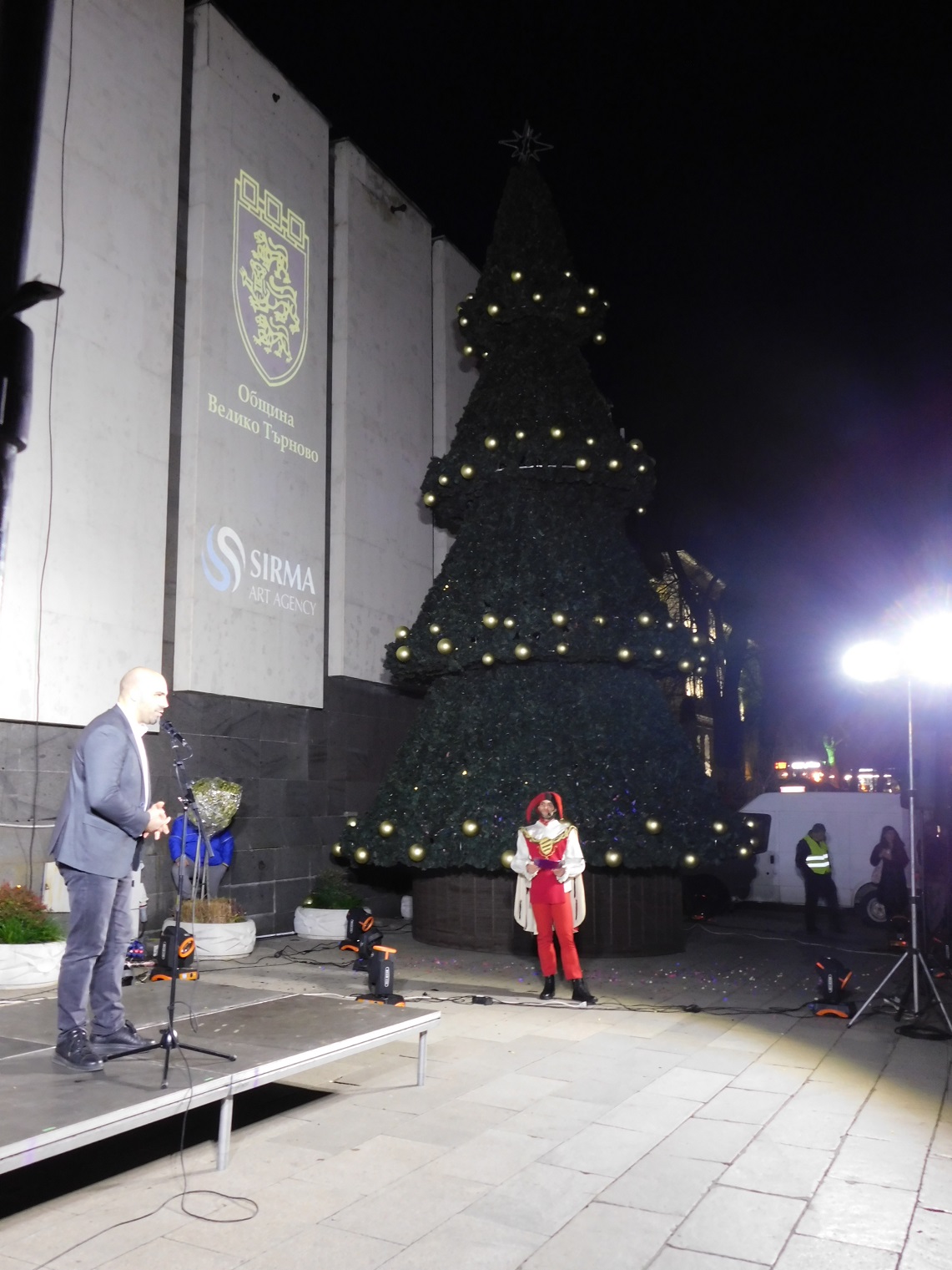 Приветствие към всички поднесе зам.-кметът на старата столица Георги Недев. „Позволете ми да ви поздравя от името на кмета Даниел Панов и на цялото ръководство на Общината. Изключително се радвам да бъдем заедно пред нашето прекрасно коледно дърво. Декември е месец, който носи всички чувства на доброта, на коледен дух, домовете ни стават по-уютни, а ние, хората – по-добри. Нека си пожелаем три неща – здраве, вяра и мир за нашите семейства, за нашия град и за България“, заяви Георги Недев.