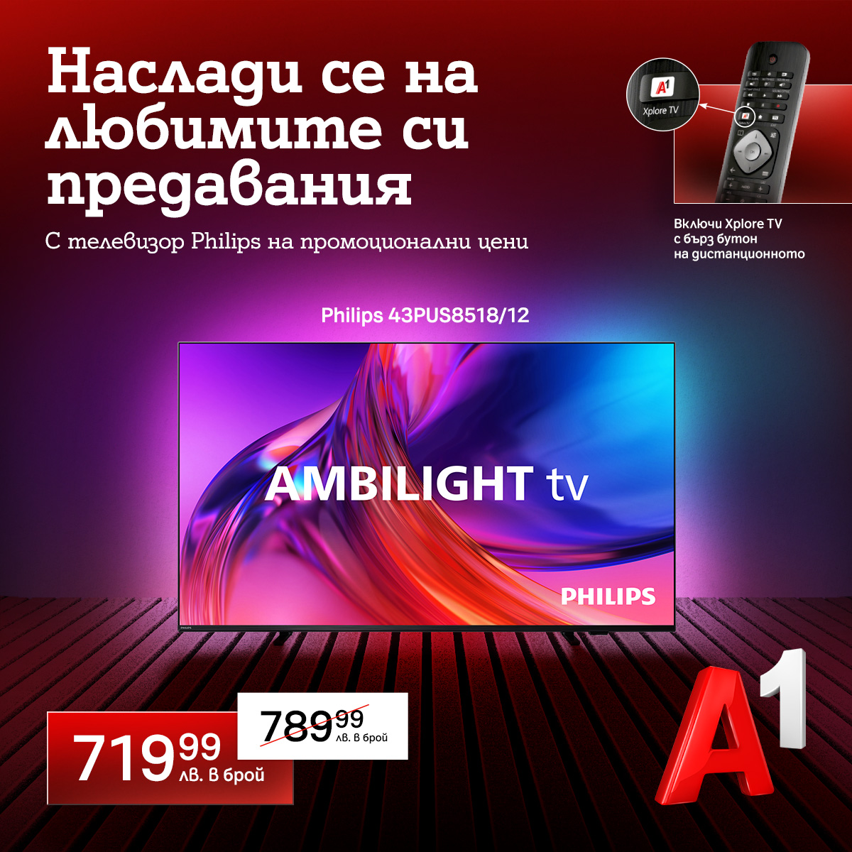 И трите модела могат да бъдат закупени в брой и на изплащане с ТВ плановете на А1. Цените на 43-инчовия телевизор на Philips започват от 719,99 лева в брой, 50-инчовата версия може да бъде закупена за 899,99 лева в брой, а големият 55-инчов модел струва 999,99 лева в брой.