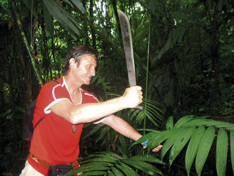 В Хондурас се сдобил с мачете. Там в джунглата през 2010 г. ходиха да търсят и откриха Рио Булгария (река България) и наследниците на българските заселници. И до днес живеят 10 000 потомци на български емигранти, заселили се в началото на миналия век. “С едно мачете съм и проправяме път в джунглата. С нас имаше хора, които отпред вървяха и правеха пътека. Пазеха ни и четирима души с автомати, защото там има много тигри и пуми. Нямаше проблем да го прекарам през границата, сложих го в големия куфар. Не съм го ползвал, но децата много му се радват вкъщи.”