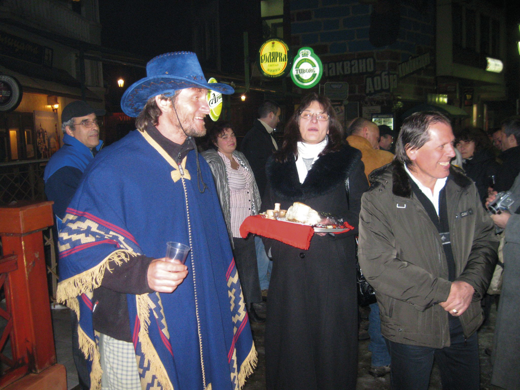 “От Аржентина си взехме пончота и шапки, тип каубойски. Летяхме от Сао Пауло през Мадрид до Букурещ, където ни чакаше бус. Всички слязохме тук, облечени в тях”, казва Данчо. Взел пончота на жена си, на децата и цялата фамилия. Друга от снимките е в Мендоса, там отседнали, докъдето летели от Чили през Андите. С Боян Димов са, но с още два вида пончо. “Тази дреха е най-разнообразна, имам различни. Дори всички хора от експедицията, с жените, с децата, си направихме едно ревю. Пончото е дори като работно облекло. Задължителна дреха им е в джунглите, докато за нас си е просто сувенир.”