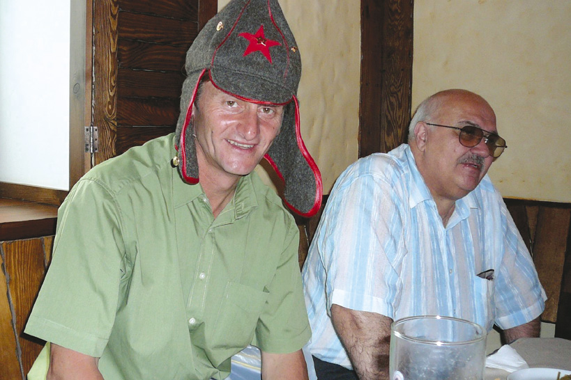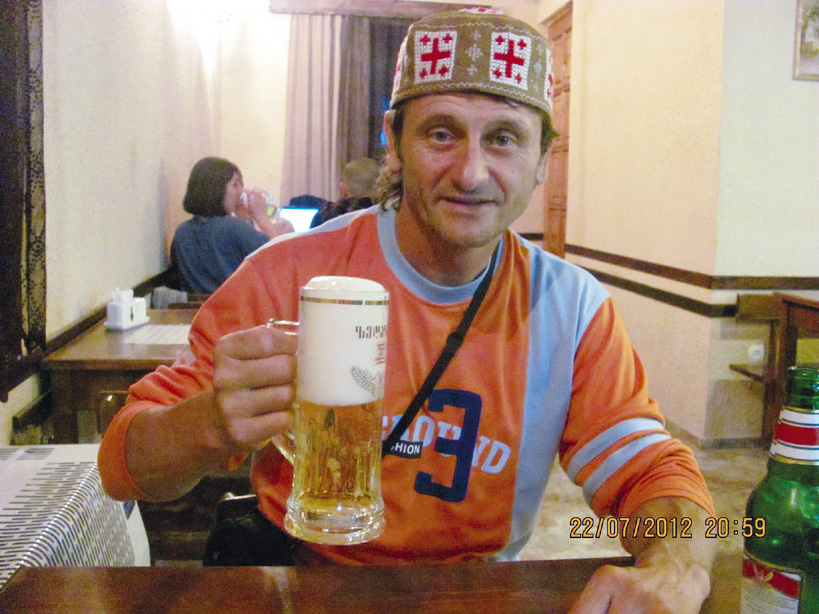На други от кадрите отново е в Кавказ, но 4 г. по-късно и на изток. С характерна за Грузия шапка с националния им символ – кръста от знамето, и с грузинска бира в ръка. Това е през 2012 г. на път за най-високия връх Казбек. Посетили и родното градче на Сталин – Гори, където има и негов музей. Снимал се и пред един манастир, пак с вълнена шапка, но от бяла вълна, и нещо като нашия ямурлук плюс гега.