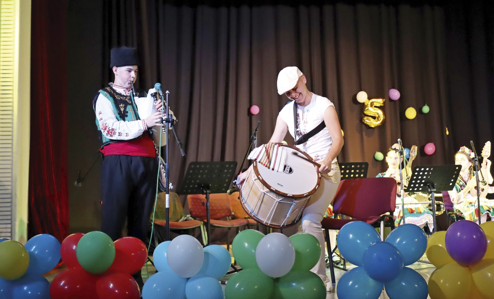 Концертната програма включваше и изпълнения на гостуващите инструменталисти – приятели от Школа “Средногорци”, гр. Пирдоп, с ръководител Цветина Грамова, за която нееднократно нашите малки музиканти свириха благотворително, а събраните средства отиваха за болната млада жена. Те поздравиха с годишнината своите домакини с няколко хора и Синаговски танц.