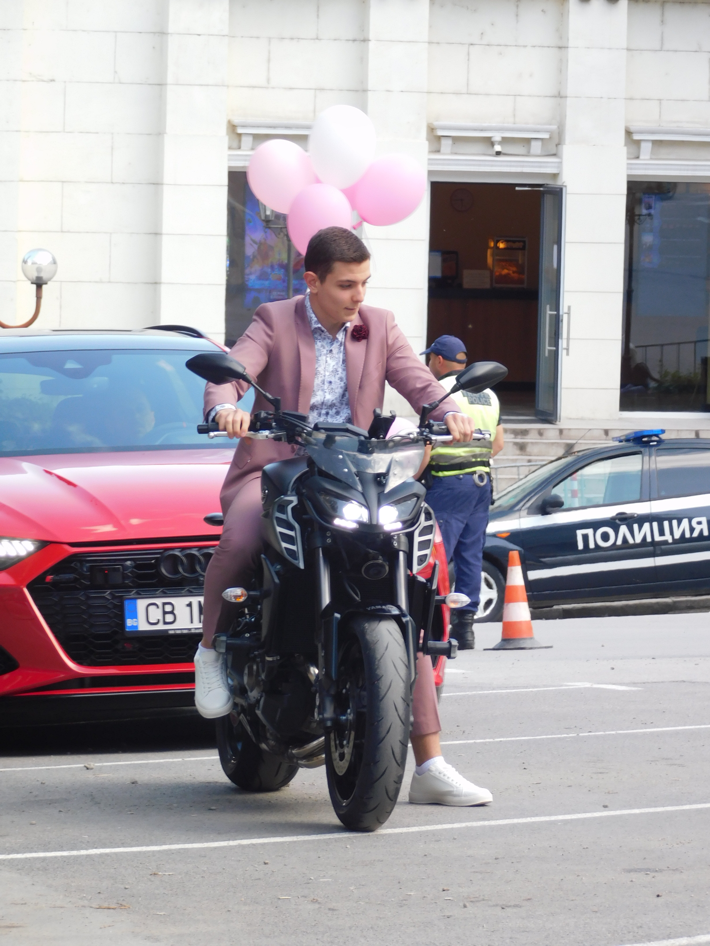 Абитуриентите пристигаха на бала си със скъпи и лъскави коли, но имаше и такива, предпочели да дойдат с мотор. Някои кавалери и дами оправяха тоалетите на тези до себе си до последния момент, а други дори закъсняха, неуспели да се нагласят навреме. Роклите бяха предимно дълги и елегантни, в тъмни цветове, като същото беше и при костюмите, а тенденцията от минали години панталоните да са съчетани с бели маратонки все още беше в сила. Акцент тази година бяха модерните панталони с дължина 7/8, а имаше и по-смели тоалети, като например сако с къс ръкав.