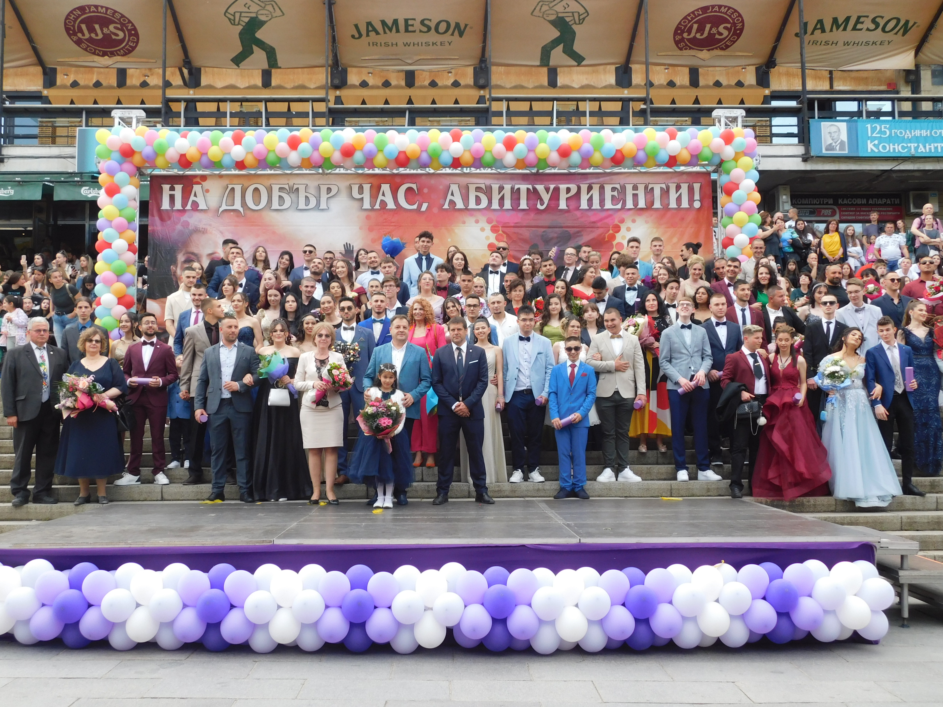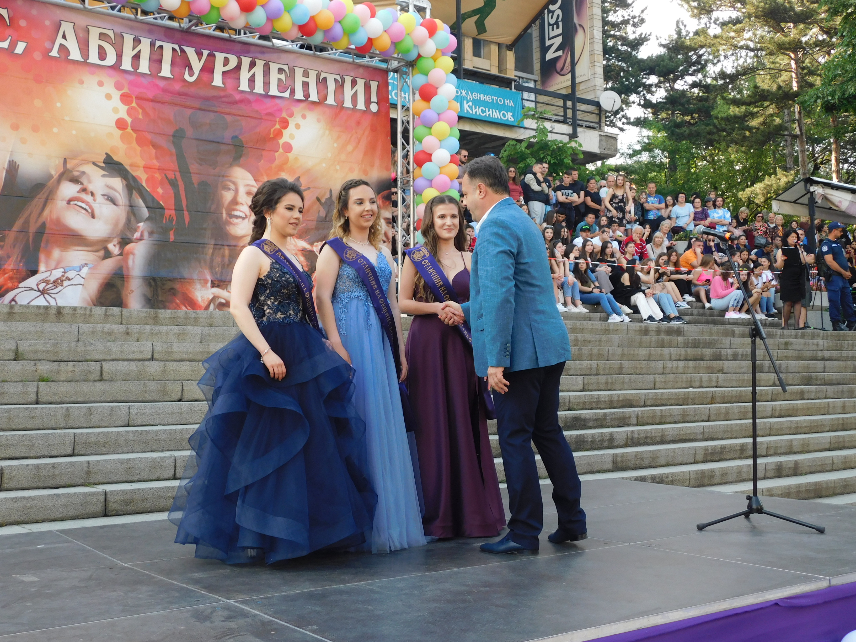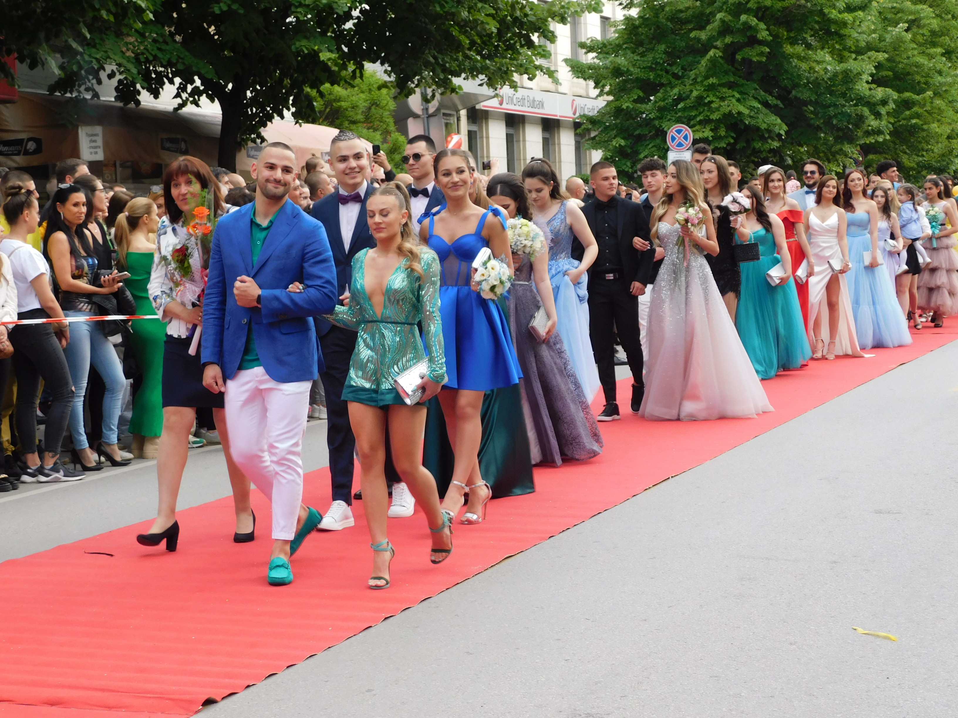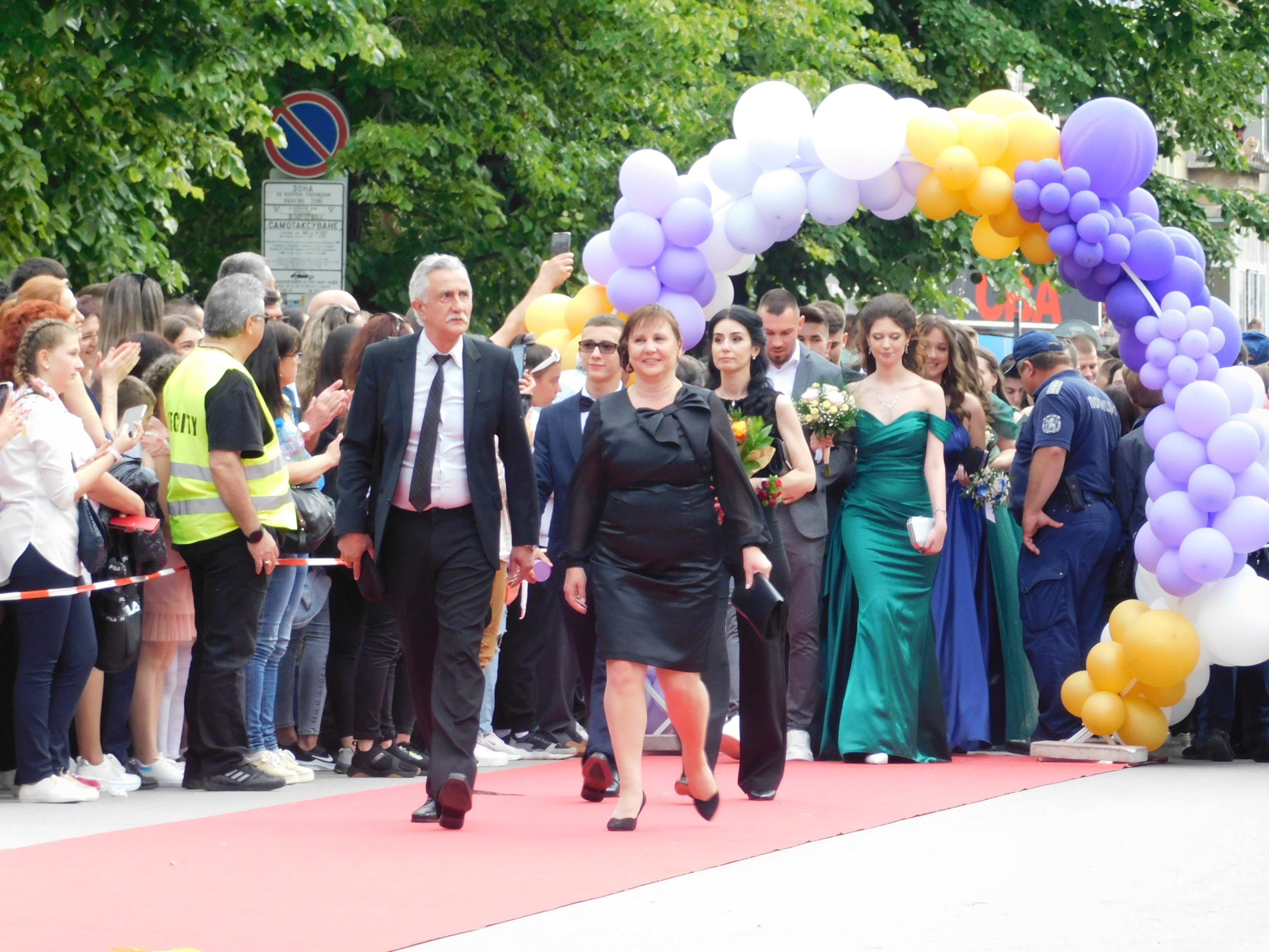 Абитуриентите от Хуманитарна гимназия „Св. св. Кирил и Методий“ дефилираха с директора на училището Павлин Витанов, а отличник на випуска е Ферхан Марков.