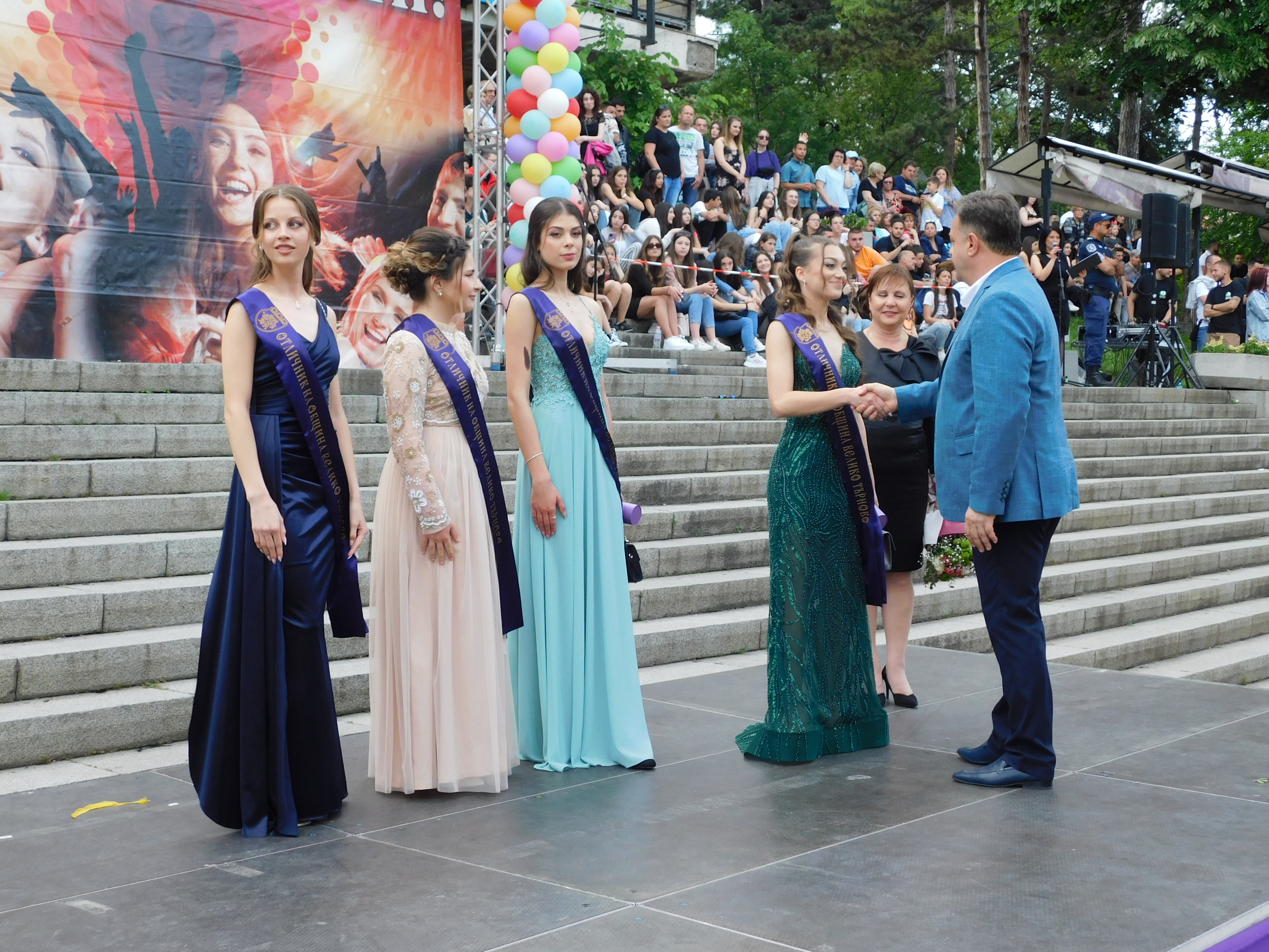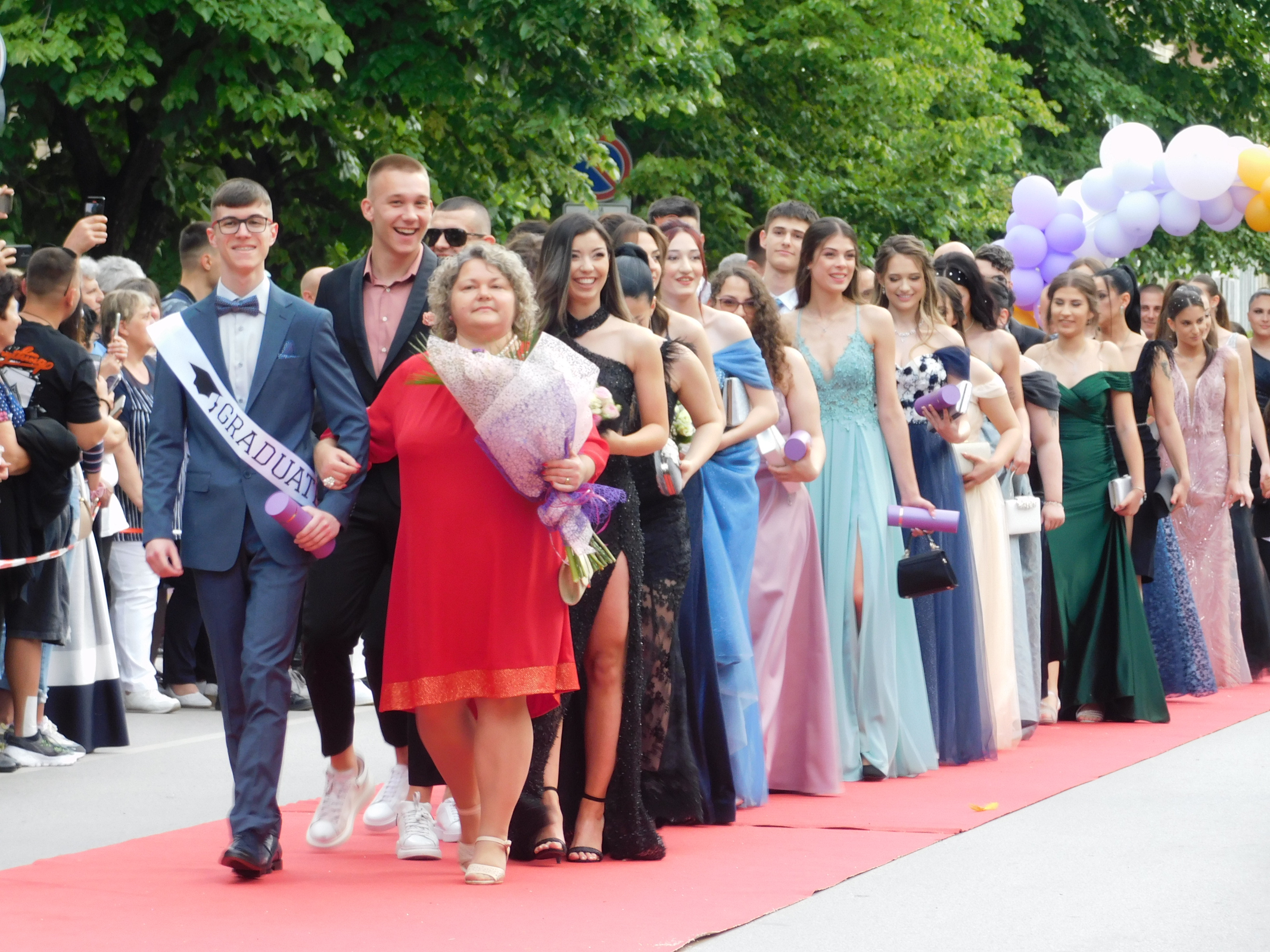 Красивата великотърновка Натали Трифонова, позната като синоптик от телевизионния екран, премина с абитуриентите по червения килим в старата столица. Тя бе дама на един от завършващите СУ „Емилиян Станев“ и грееше с усмивката си сред дефилиращите зрелостници в центъра на града. Друго популярно лице от телевизионния екран – репортерът Марияна Трифонова също беше на бала, но за да изпрати сина си – абитуриент от Езикова гимназия „Проф. д-р Асен Златаров“, който бе придружаван от своята сестра. Завършващите бяха посрещани от Даниел Панов, кмет на В. Търново, който награди най-заслужилите и подари на всеки своето послание.