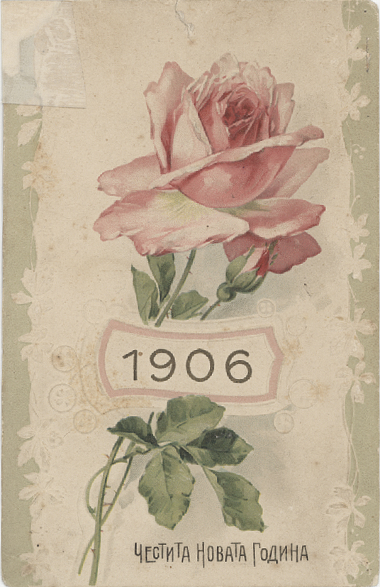 Коледни и Новогодишни картички от богатата колекция на Иван Панайотов. Едната от тях – красива и релефна, датира още от 1906 година. От задната страна е с оригинален печат, марка и текст до получателя.