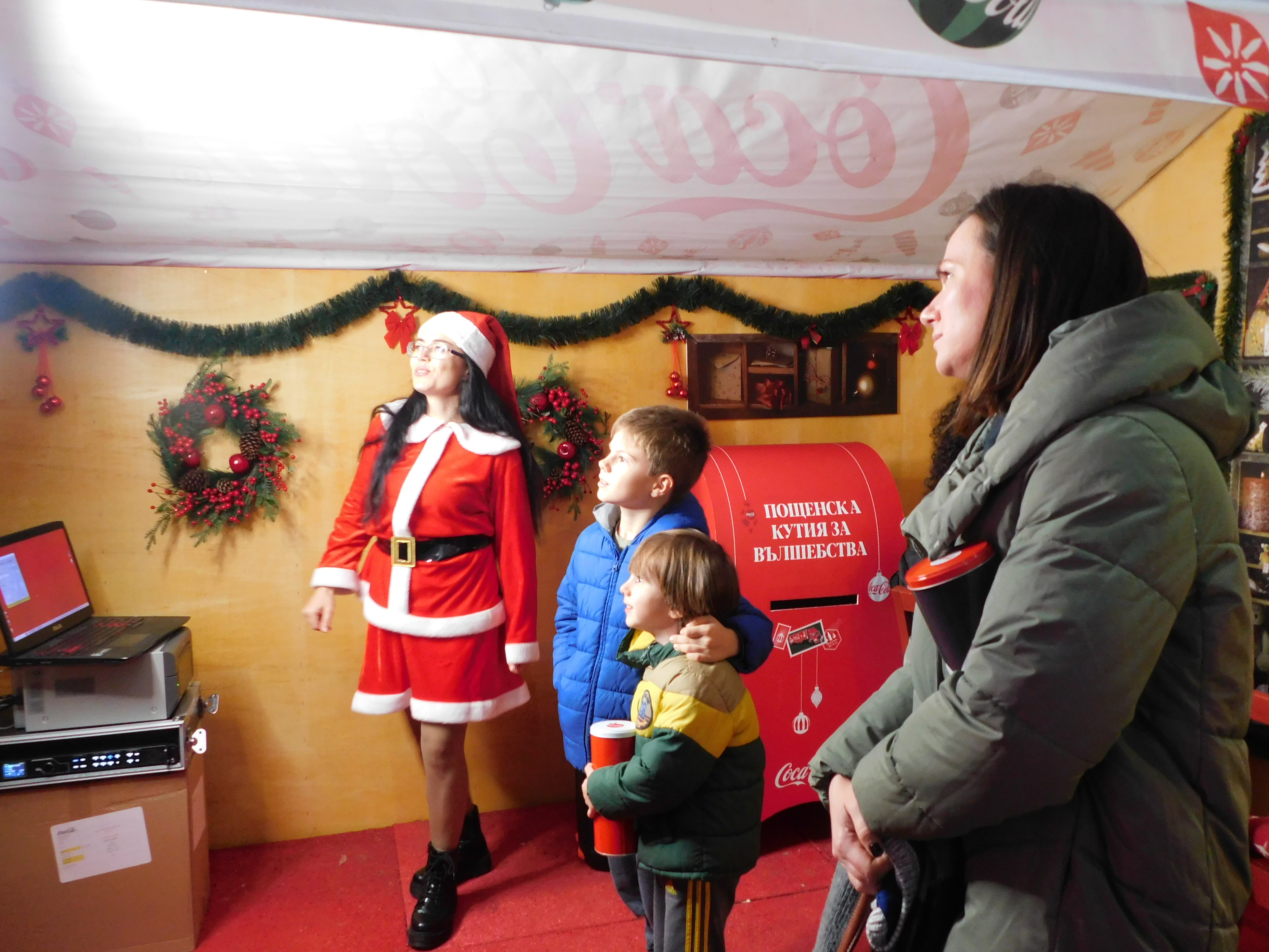 Дълги бяха опашките и пред Коледния кът за снимки, който запечатваше магическия момент за децата, а фотосите можеха да се вземат за спомен. Най-много деца с техните родители обаче се тълпяха пред самия Дядо Коледа, като снимки с белобрадия старец си правеше всеки желаещ. Специален кът, наречен „Пощенска кутия за вълшебства“, бе за писане на писма с мили думи и пожелания, които да зарадват някой непознат, избран на случаен принцип от друг град. Имаше още кътове за игра със „снежни топки“ и магична коледна елха с празнични активности и награди в Коледното градче на Кока-Кола.