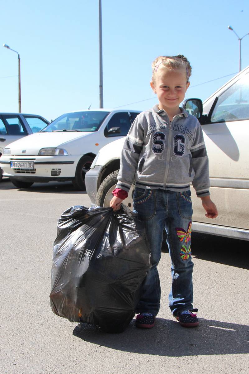 За първи път сме тук, каза студентката Татяна Александрова, майка на Изабел и Радостин. Те са тук с колежката є Даяна Бойкова от ВТУ, която им разказала за инициативата. Таня заяви, че събирането на непотребната пластмаса вкъщи се приело с голям интерес от децата. Те вече знаят, че отпадъците се събират разделно и след това се преработват.