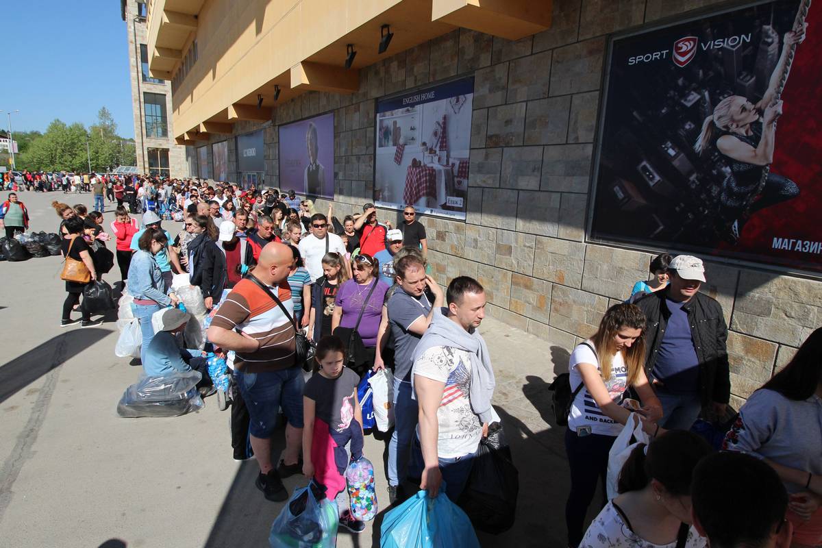 Още в 10 часа сутринта огромна опашка се зави на площадката пред мола. Малки и големи, семейства с бебета в колички, чакаха търпеливо с големи торби, препълнени с пластмаса. Нямаше недоволни, организацията на домакините беше отлична и дългата опашката вървеше бързо. На голяма маса доброволци мерят  торбите с кантарче, подават талонче, а огромен камион поема отпадъците, които вътре се пресоват допълнително. Малко по-бавно върви опашката пред щанда за книги, защото изборът от заглавия е голям и хората се чудят какво да си вземат. Срещу 1 кг пластмаса всеки получава талон за една книга. По желание тя може да бъде заменена с две електронни издания.