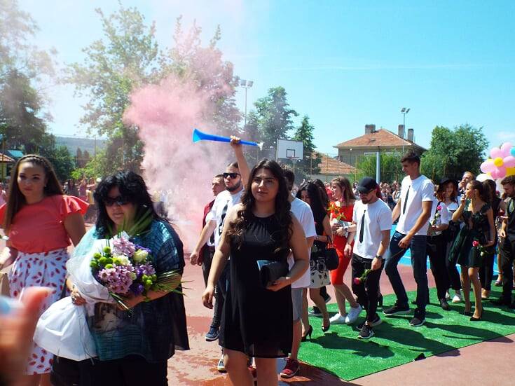 Пожелахме „На добър час и успех в живота” на 43 прекрасни млади хора, които пет години се обучаваха в две паралелки: профил „Чуждоезиков”- с изучаване на английски и испански език , с класен ръководител Полина Йорданова и профил „Природоматематически”- с профилиращи предмети биология и здравно образование, химия и опазване на околната среда и информационни технологии, с класен ръководител Марияна Кирова.