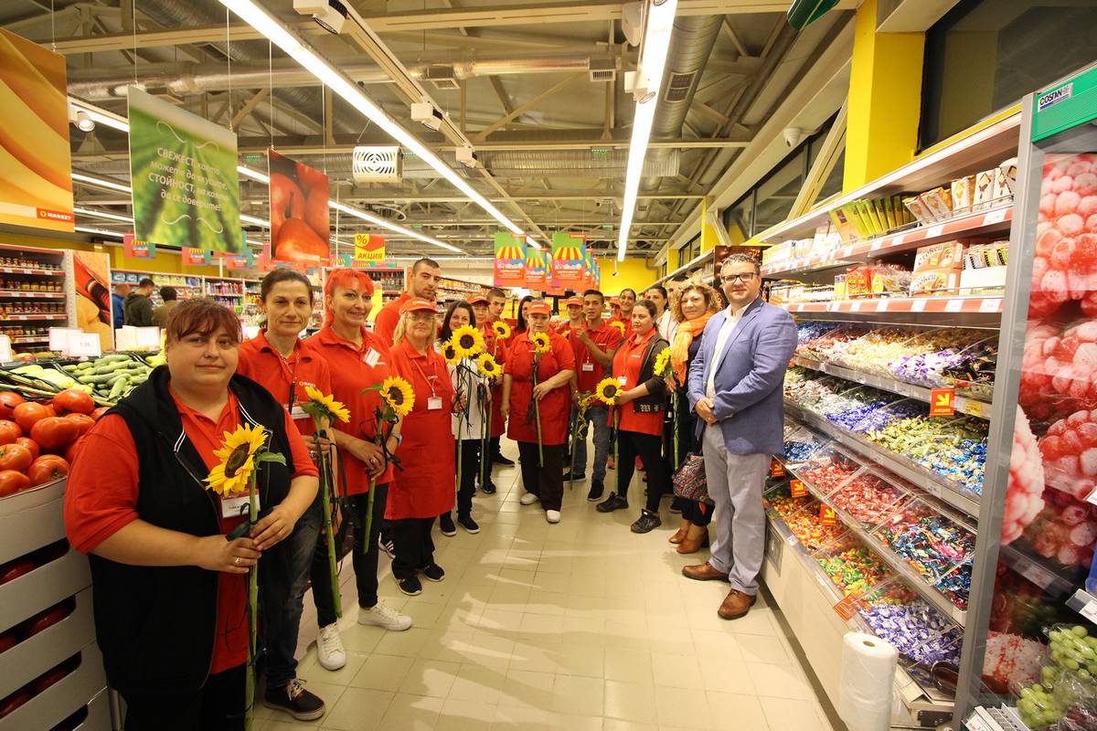 След това всички служители и гости получиха от ръководството на веригата по един слънчоглед и по традиция си направиха първата обща снимка в търговския обект.