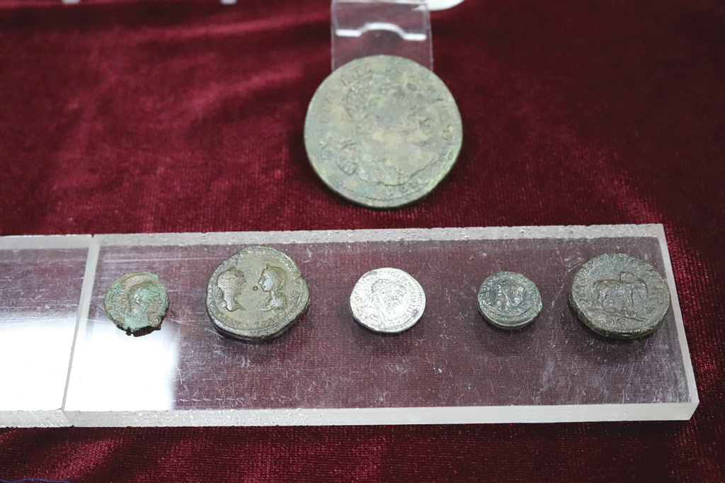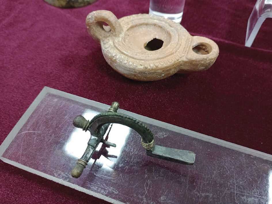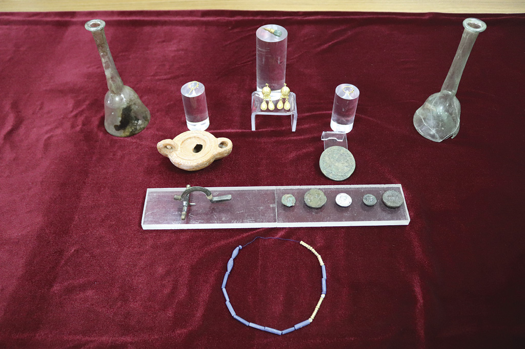 В двата гроба са поставени много представителни накити. В този на детето това са чифт малки обички, огърлица от стъклени мъниста с различен цвят и форма и два стъклени лакримария, приличащи на колбички. През античността тези съдове са използвани за съхраняване сълзите на оплаквачките, но впоследствие придобиват по-практично предназначение и в тях се съхраняват благовония, като в единия все още се вижда част от съдържанието. В некропола е открита и една цяла керамична амфора, в която най-вероятно е имало вино, също е част от погребалния ритуал. Много рядка находка е голям бронзов медальон, който е един вид възпоменателна монета на император Каракала. Интересното при него е добрата му запазеност, както и че е отсечен в град Пергам в Мала Азия (днешна Турция). На обратната му страна има изобразена прекрасна сцена от посещението на императора през 214 г. в Пергам, където той търси изцеление в светилището на прочутия бог на медицината Асклепий. Медальонът е част от серия, която като на филм представя случилото се, и има предположение, че притежаващите такива монети са запознати с контекста на изображението. Той е много рядък и интересен и вече е част от фонда на РИМ – В. Търново, разказа Чакъров.