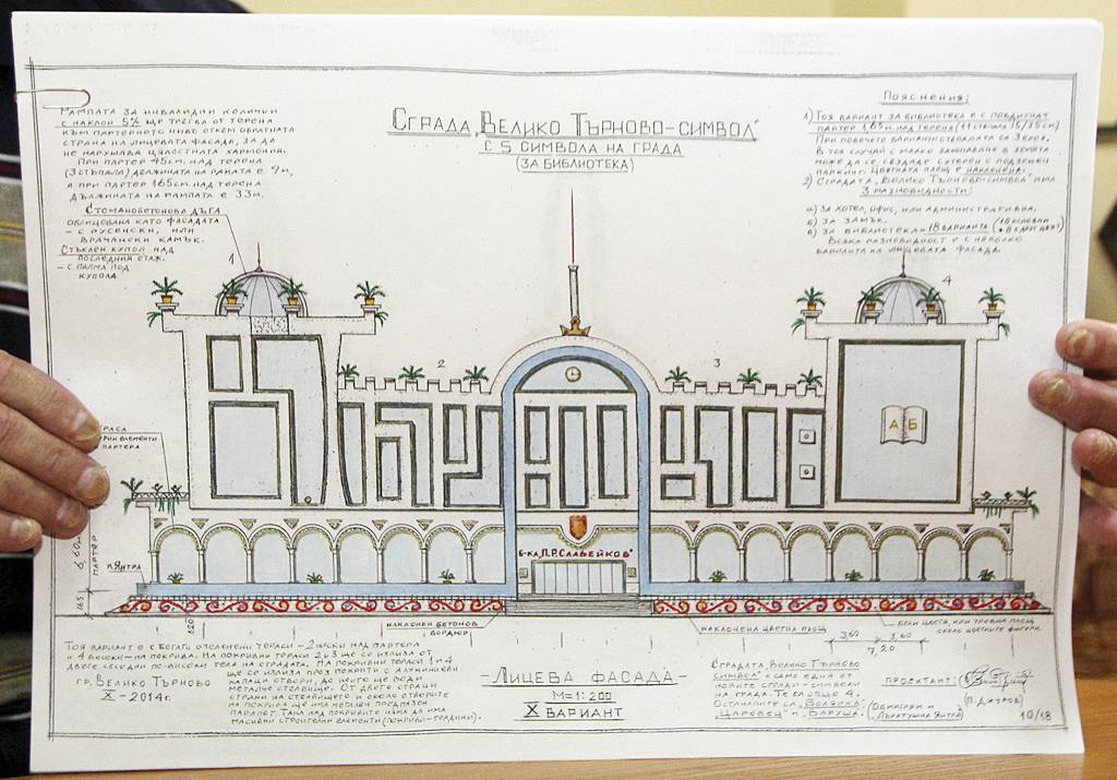 Уникален проект за библиотека с висящи градини и символите на старопрестолния град предлага търновецът Петър Джуров. Сградата да бъде разположена в Старото военно училище, където идеите на Общината за новия градски център предвиждат да има Експозиционен център, библиотека, музеи, спортни площадки и др. А символите, изобразени върху фасадата на библиотеката, са гербът на Велико Търново, царската корона, колоната на Иван Асен II, река Янтра и крепостните стени, пазили Търновград.