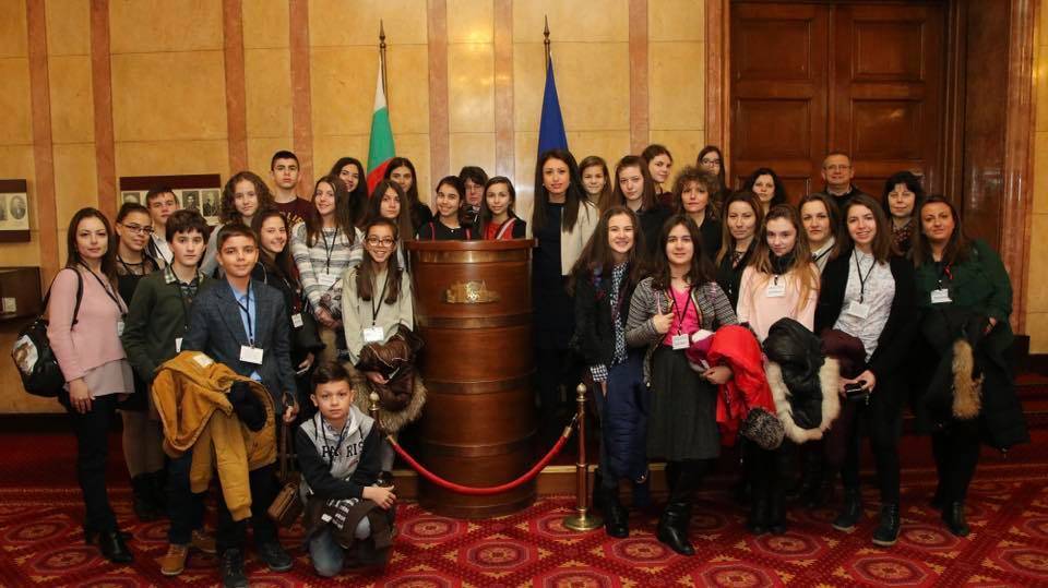 При посещението си в Парламента учениците и техните преподаватели участваха в среща с членовете на Парламентарната комисия по образование и наука Станислава Стоянова и Ася Пеева, както и с другия народен представител от Велико Търново Клавдия Ганчева, а също и депутата Радостин Танев. Стоянова запозна гостите си с работата си като народен представител и участник в две парламентарни комисии. За учениците беше интересно да научат как протича работният ден на един депутат, какви са етапите на законотворческия процес и от кого зависи спазването на законите в страната. Стоянова призова присъстващите младежи да продължават да бъдат активни и да полагат усилия, като подчерта, че по този начин за тях няма да има непостижими цели. С нетърпение групата се настани на балкона и погледа част от “парламентарния контрол” на депутатите.
