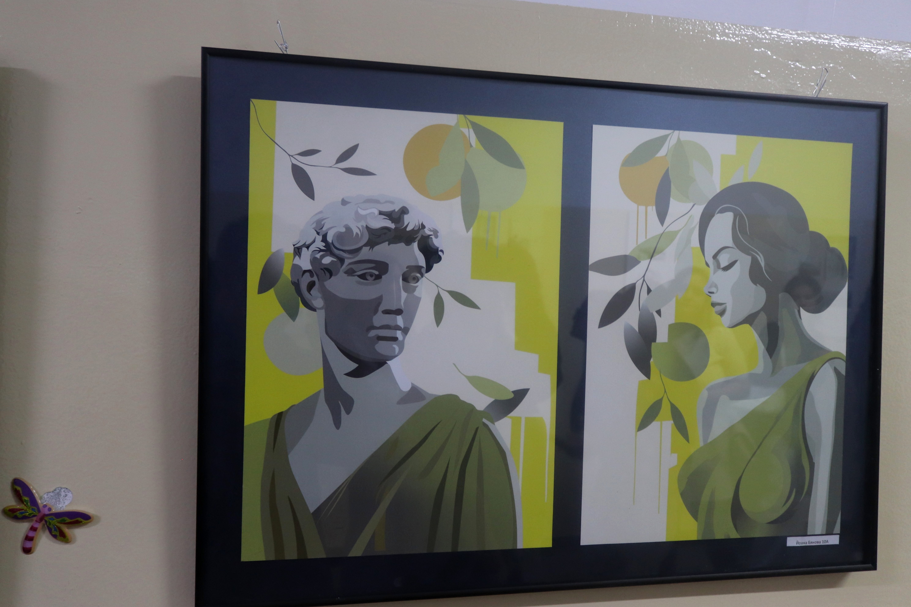 Произведенията на изложбата са разделени на две категории: типична графика, изработена чрез техниката „суха игла“ и дигитални материали. По този начин чрез контраста на двете техники се показва еволюцията, което е претърпяло изобразителното изкуство през годините. На изложбата присъстваха и специалисти от Факултета по изобразителни изкуства към ВТУ, които не скриха възхищението си от професионалното изпълнение на техниките от страна на учениците, добрата аранжировка и композиция, както и усещането за цветовете и светлосенките.