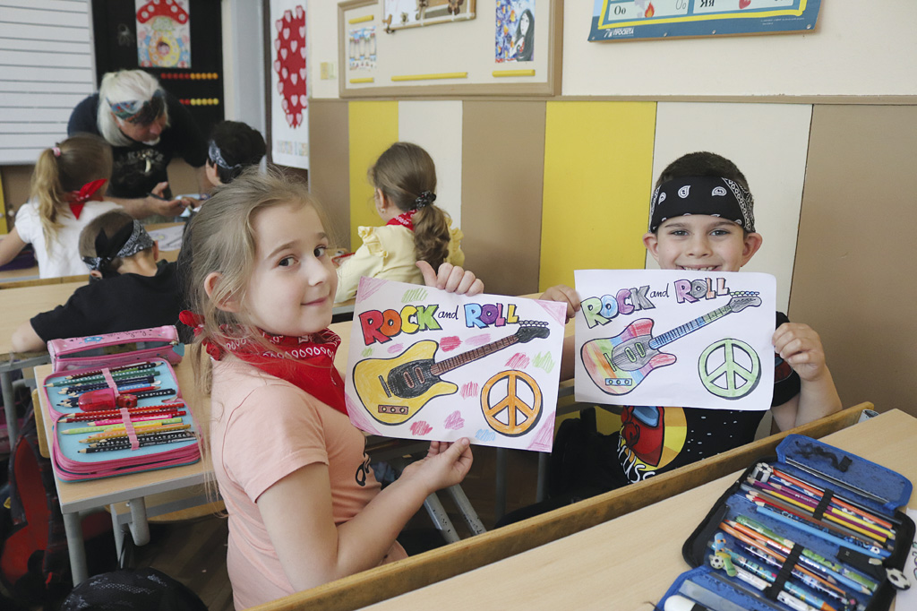 Големият български блусар и рокаджия Васко Кръпката гостува на учениците от 1 “д” клас в СУ “Емилиян Станев” във В. Търново по покана на техния класен ръководител Илина Керина. Музикантът изнесе рок урок, в който разказа на децата повече за рокендрола и блуса, за тяхната световна история и развитието им в България, за по-известните групи и изпълнители, за създаването на някои емблематични песни в този жанр и за техните послания. Той подкрепи думите си с много изпълнения на живо, помагайки си със своята китара, като часът се превърна в един мини акустичен концерт. Децата видимо бяха подготвени добре, тъй като се оказа, че знаеха някои от песните и припяваха с огромно желание, а танците и доброто настроение дойдоха от само себе си. Прозвучаха неостаряващи хитове на “Бийтълс”, “Ролинг стоунс”, Милена, Георги Минчев, реге, класика и разбира се, на Васко Кръпката и “Подуене блус бенд”. Гостът показа на първокласниците снимки и видеоклипчета на своите мотор и бус, както и с изпълнения на неговия син – барабанист на групата “Odd crew” – Боян Георгиев – Бонзи. Разказа им как сам се е научил да свири на китара и как заради едни почитателки на сина му още като малък му се наложило да си измисли подпис на сцената. За децата имаше рисунки, предварително подготвени от художника Христо Керин, които те сами оцветиха, а върху тях получиха и личен автограф от госта. Първолаците си хапнаха и специални рок курабийки, а накрая пристигнаха възпитаниците на Керина от 6 клас, за да се включат в урока, пеейки и танцувайки, припомняйки си как преди години Васко Кръпката гостува и на тях. Музикантът остави своето послание на стената на класната стая, където има нарисуван неговият бус, с който пътува по концерти и турнета. Там той написа “Вечно будни, бодри и млади с рокендрола!”.