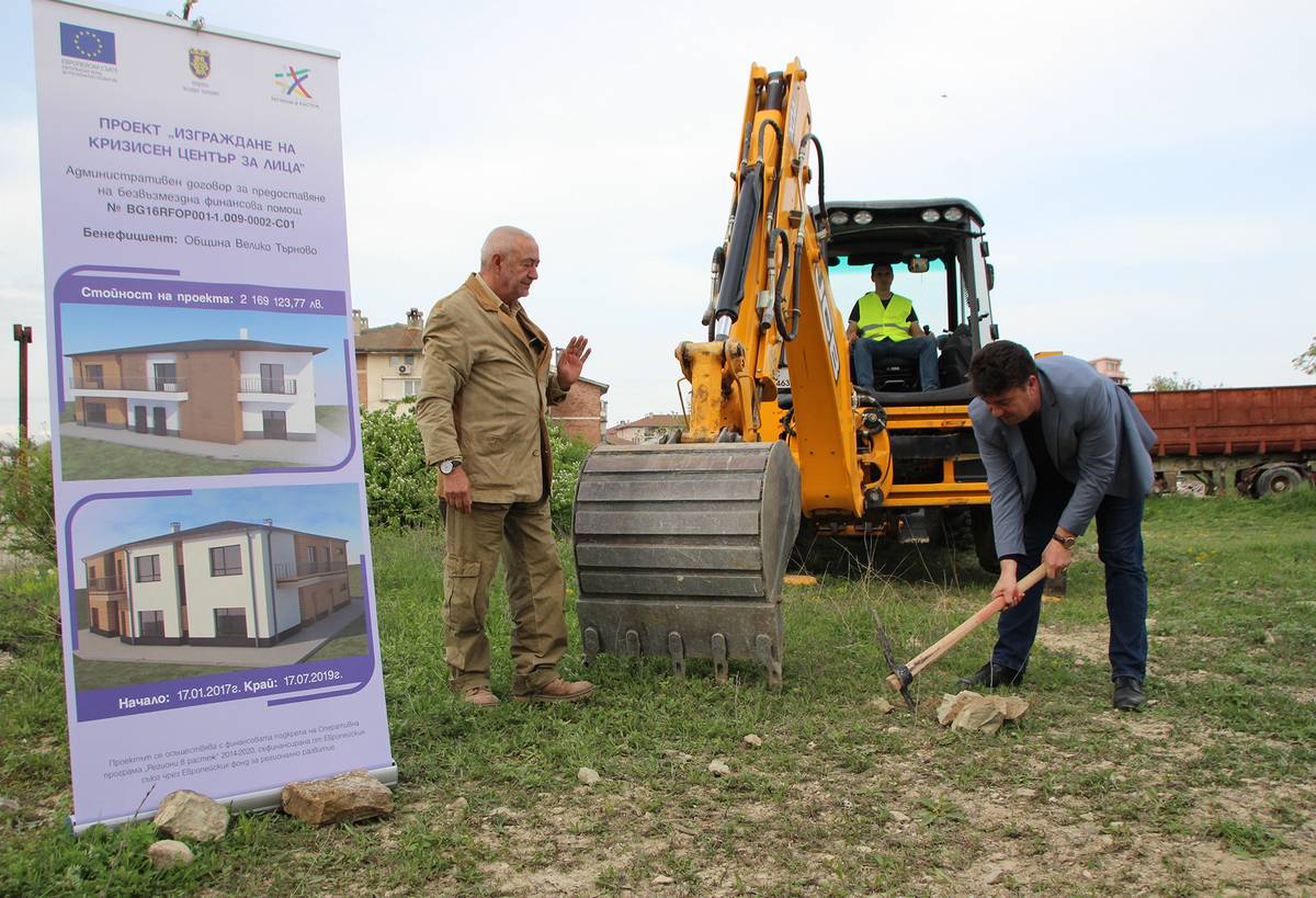 Със символична първа копка започна изграждането на Кризисен център за лица във Велико Търново, който ще се намира на ул. “Драган Цончев” №6 в кв. “Бузлуджа”. Обектът включва две иновативни, тип пасивни къщи, които ще бъдат построени с европейски средства на стойност 2 169 123 лв. Капацитетът е за 30 души. Това са хора, пострадали от насилие, трафик, наводнение, пожар, майки с деца и др., които могат да получат безплатна индивидуална социална, здравна и юридическа подкрепа в рамките до 6 месеца.