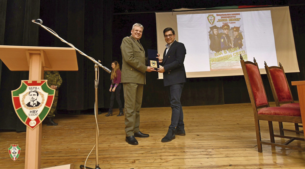 В края на дискусията полк. Крайнов връчи на Светослав Иванов плакет на Националния военен университет “Васил Левски”.