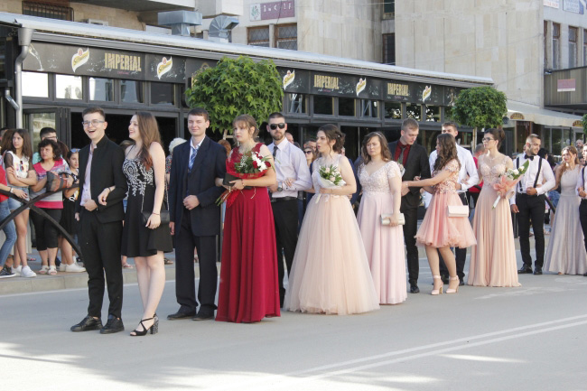 Випускници от четири горнооряховски училища дефилирахана червения килим. В отсечката между читалище “Напредък-1869” и сградата на Общината горнооряховчани имаха възможността да видят абитуриентите, облечени в елегантни рокли и костюми.
