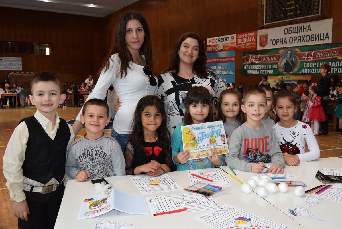 Близо 160 деца от детските градини изработваха пъстра великденска украса заедно със своите учители и родители на Велики четвъртък в спортната зала „Никола Петров” в Горна Оряховица. Заедно с малчуганите от детските градини в творческата работилница се включиха и директорът на дирекция „Образование, култура, младежки дейности и спорт, социални дейности и здравеопазване, международни връзки” Румяна Матеева, представители на дирекцията, уредникът на Художествена галерия „Недялко Каранешев” Елеонора Маркова, инж. Петя Богданова, директор на Общинско предприятие „Младежки дейности, спортни имоти и прояви”. Заедно с малките художници те изписаха почти двуметрово гипсово яйце.