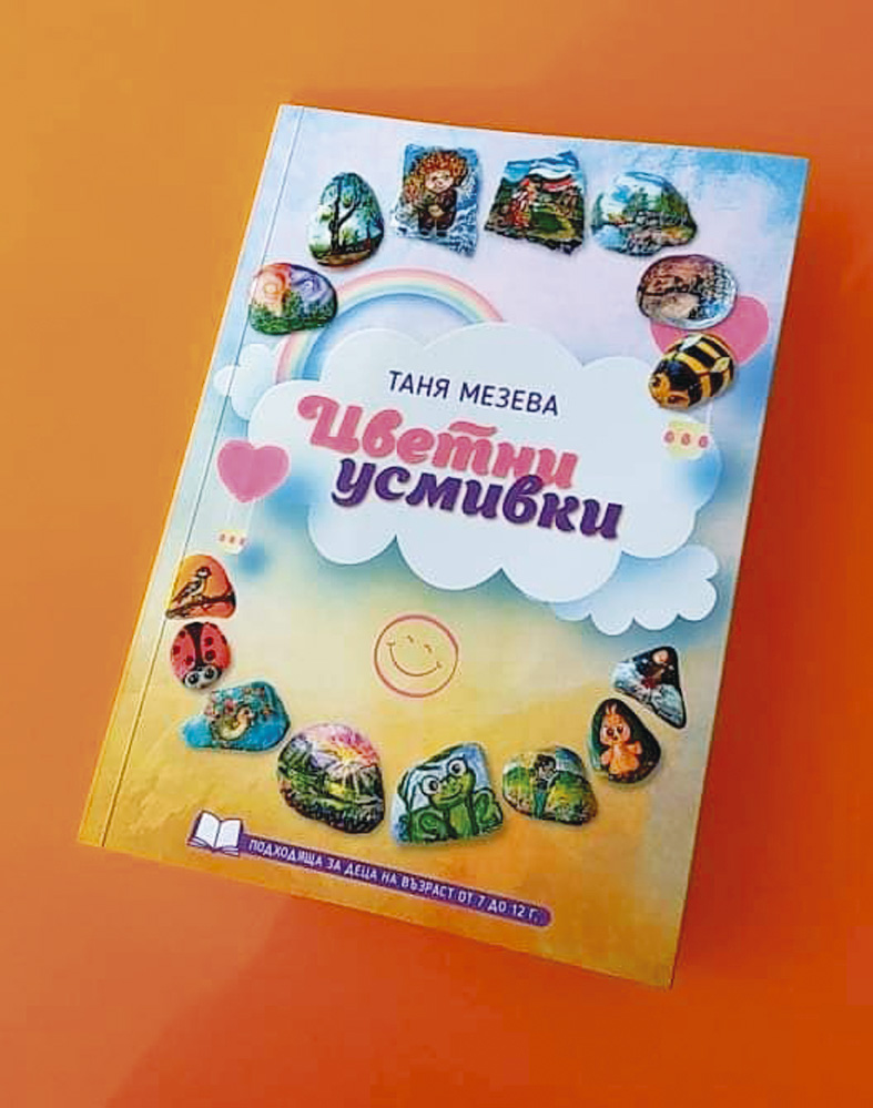 Горнооряховската поетеса Таня Мезева издаде новата си стихосбирка, насочена към най-малките любители на поезията. Тя е озаглавена “Цветни усмивки” и съдържа 60 стихотворения и басни, подходящи за деца на възраст от 7 до 12 години. Творбите са разпределени в 4 раздела. Първият е “Аз мога да чета” и е за тези, които вече са се научили да се справят с четенето и сами. Другите две глави са свързани с темата за сезоните и приятелството, а четвъртата включва приказки и басни за най-порасналите читатели на кигата.