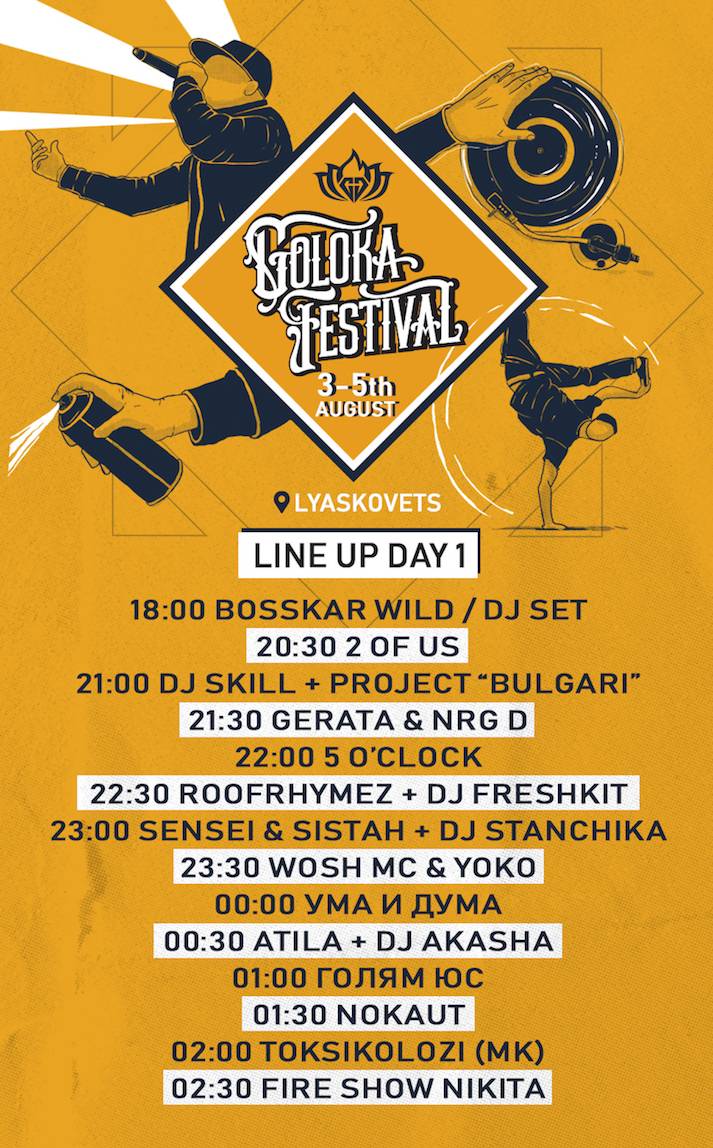 GOLOKA FESTIVAL се придържа към идеята, че основната цел на изкуството е да приобщава и обединява хората и има амбицията да направи събитието традиционно. Новият фестивал за хип-хоп култура ще се представи със силен лайн-ъп, какъвто трудно ще бъде забелязан на друго място у нас. Вижте списък на участниците по дни (по-долу) и следете за всякакви подробности във фейсбук – ТУК.