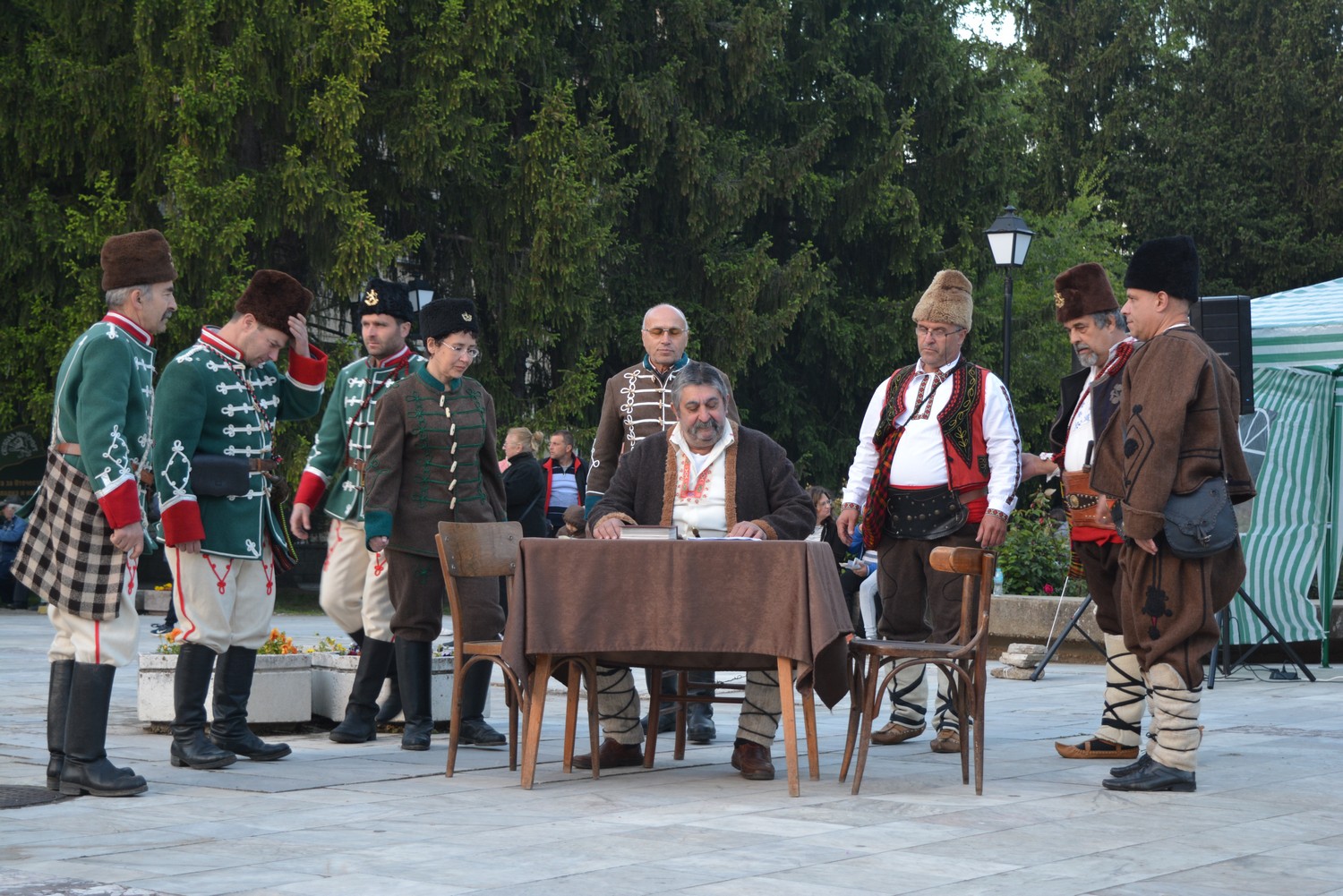 С възстановка на събитията от май 1876г., факелно шествие, велика вечерня с панихида и тържествен митинг-заря в град Бяла черква празнуваха 143 години от Априлското въстание и 43 години от обявяването на селището за град.