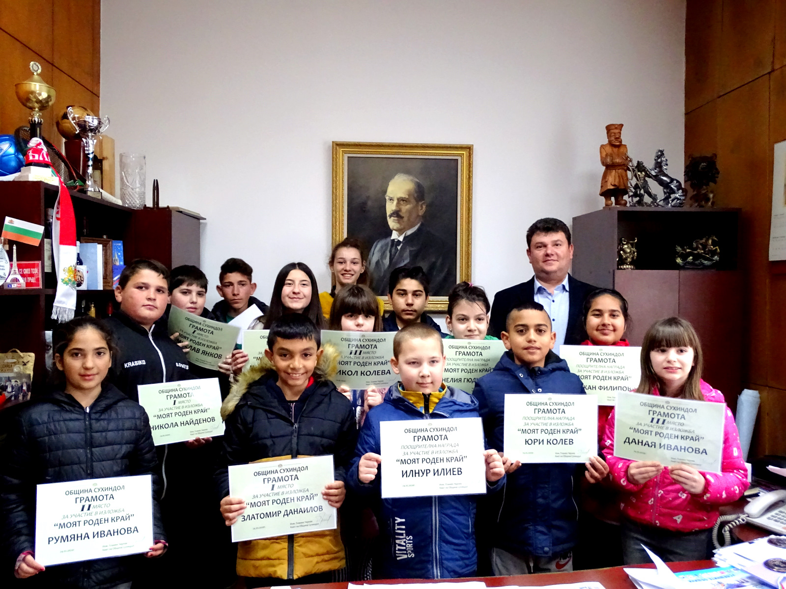 Кметът на Сухиндол инж. Пламен Чернев награди всички участници в изложбата „Моят роден край“. Експозицията беше представена по повод празника на града, а нейни автори са учениците от СУ „Св. Климент Охридски“.
