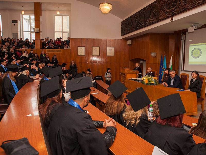Абсолвентите на Стопанска академия „Димитър А. Ценов” от випуск 2018 в ОКС „бакалавър” получиха дипломите си на тържествени церемонии. В рамките на проведените осем церемонии, се дипломираха обучавалите се в периода 2014-2018 г. по различните специалности към четирите факултета на свищовското висше училище. В аулата на родната Алма матер, облечени с академични тоги и шапки, в присъствието на своите родители, приятели и близки, дипломантите получиха поздравления и признание за положения труд през 4-годишния период на обучение.