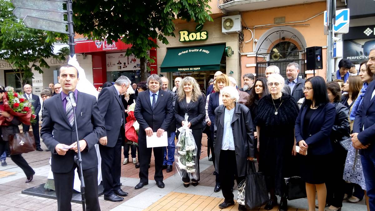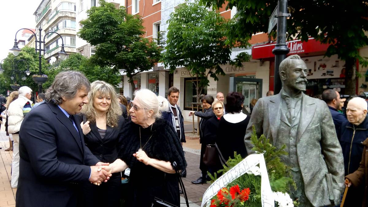 На тържествена церемония в гр. София Йорданка Фандъкова и д-р Кристиян Кирилов имаха удоволствието да открият архитектурна композиция на един от най-бележитите българи, а именно Алеко Константинов. Този проект беше реализиран със съвместните усилия на Софийска община и община Свищов. Зам.-кметът Тодор Чобанов откри церемонията, след което даде думата на председателя на Общински съвет – Свищов д-р Кристиян Кирилов. След словото му, кметът на София Йорданка Фандъкова в приветствените си думи оптрави призив към всички – нека да се радват и пазят паметника на Алеко, но и да не спират да четат произведенията му. Паметникът е разположен на търговската улица Витошка, в близост до кръстовището с бул. „П.Евтимий”. В композицията Щастливецът е отправил поглед към любимата му планината Витоша, а до него е подпрян куфарът му – символизиращ свободолюбивия дух на пътешественик. За поета, пътешественика, общественика и преди всичко човекът Алеко Константинов припомниха Стоян Алексиев и Николай Урумов, които са имали удоволствеито, като актьори, да се потопят в неговия свят. Племенницата на Алеко Константинов – Милена Гергинова беше сред специалните гости и не скри вълнението си от този акт на уважение към Алеко. Сред специалните гости беше и секретарят на община Свищов Любомира Петрова, както и голяма група свищовлии, които с радост споделиха този празничен момент. Софийският духов оркестър придаде тържественост на церемонията, а музиката му бе фин завършек на вълнуващия празник. Свищовлии с радост забелязаха, че една от посоките в скулптурната композиция сочи пътя към Свищов. Всички си пожелаха повече хора да последват тази посока, за да посетят родния град на Алеко Константинов и родната му къща-музей, тъй като винаги има какво още да се открие за богатата личност на Алеко Константинов.