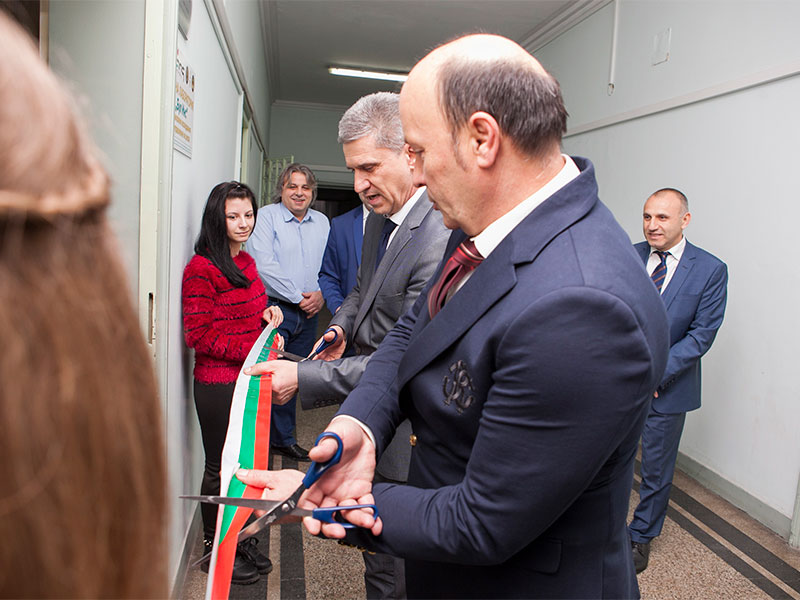 Доц. Марчевски и Крум Крумов изпълниха ритуала по прерязване на трикольорната лента, а всички присъстващи гости, академични преподаватели и студенти разгледаха новооткритата научна лаборатория.