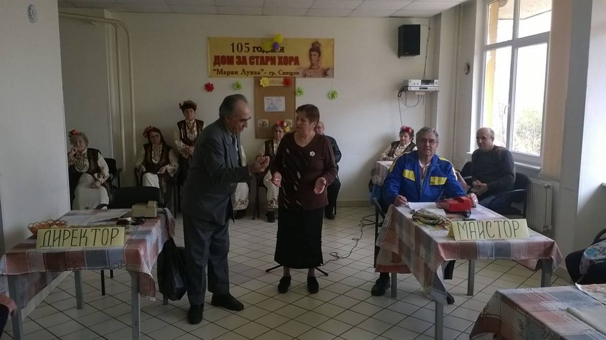 В навечерието на първа пролет, Певческата група към ПК „Щастливеца” внесе пролетно настроение в Дома за стари хора, гр. Свищов. Самодейците от певческата група изпълниха 8 песни, с които стоплиха сърцата на възрастните хора. Членовете на пенсионерски клуб „Щастливеца” Владо Янков и Богомил Симеонов представиха пиесата „Ходатайство”, с която приятно изненадаха домуващите. Гостите бяха почерпени от любезните домакини с бонбони, а накрая на програмата, всички заедно завъртяха кръшно българско хоро, което беше водено от 94 годишната Кремяна Бакърджиева.