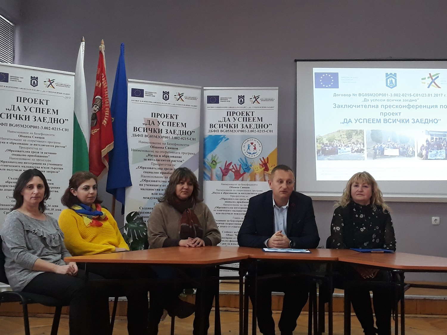 Община Свищов съвместно със СУ „Цветан Радославов” гр. Свищов, ОУ „Филип Сакелариевич” гр. Свищов и в партньорство със сдружение „Нова възможност” гр. Плевен успешно реализира заложените дейности по проект „Да успеем всички заедно“ по Договор за предоставяне на безвъзмездна финансова помощ с регистрационен номер BG05M2OP001-3.002-0215-С01/23.01.2017 г.
