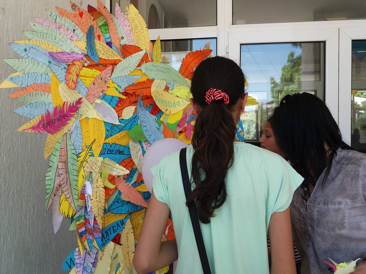 В рамките на седмица учениците споделяха своите перца послания за вдъхновението, които на финала украсиха многоцветните крила на училището. “Не се предавай!”, “Семейството и приятелите са моето вдъхновение!”, “Обичам училището и своите учители!”, “Бъди смел!”, “Човек се учи, докато е жив!”, “Да има здраве, любов и доброта!” са само част от споделените послания, които вдъхновяват децата.