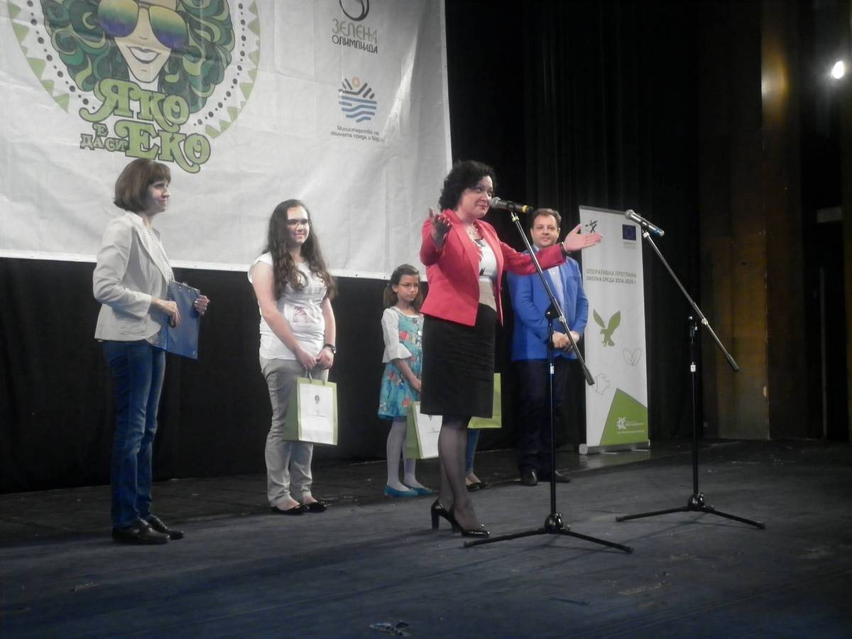 За четвърта година МОСВ /Министерство на околната среда и водите/ и Академика БГ организират Зелена олимпиада. „Яко е да си еко!“-това е мотото на тазгодишната кампания на МОСВ. В нея учениците решават тест като показват знанията си за природата и нейното опазване. След провеждане на олимпиадата следва отличаване на най-добрите. За популяризиране на събитието тази година във всяка област се проведе спектакъл с двама любими актьори-Димитър Рачков и Васил Василев-Зуека. Най-вълнуващо за нашето училище тази година е първото място на Любослава Петрова от VІІ а клас. На церемонията проведена в Държавен театър „Константин Кисимов“ , Велико Търново, наградите бяха връчени от министър Ивелина Василева и кмета на град Велико Търново. Вълнението е напълно заслужено, защото сред 7000 участници Любослава Петрова е отличена като победител в групата 5-8 клас. А наградата е смартфон.