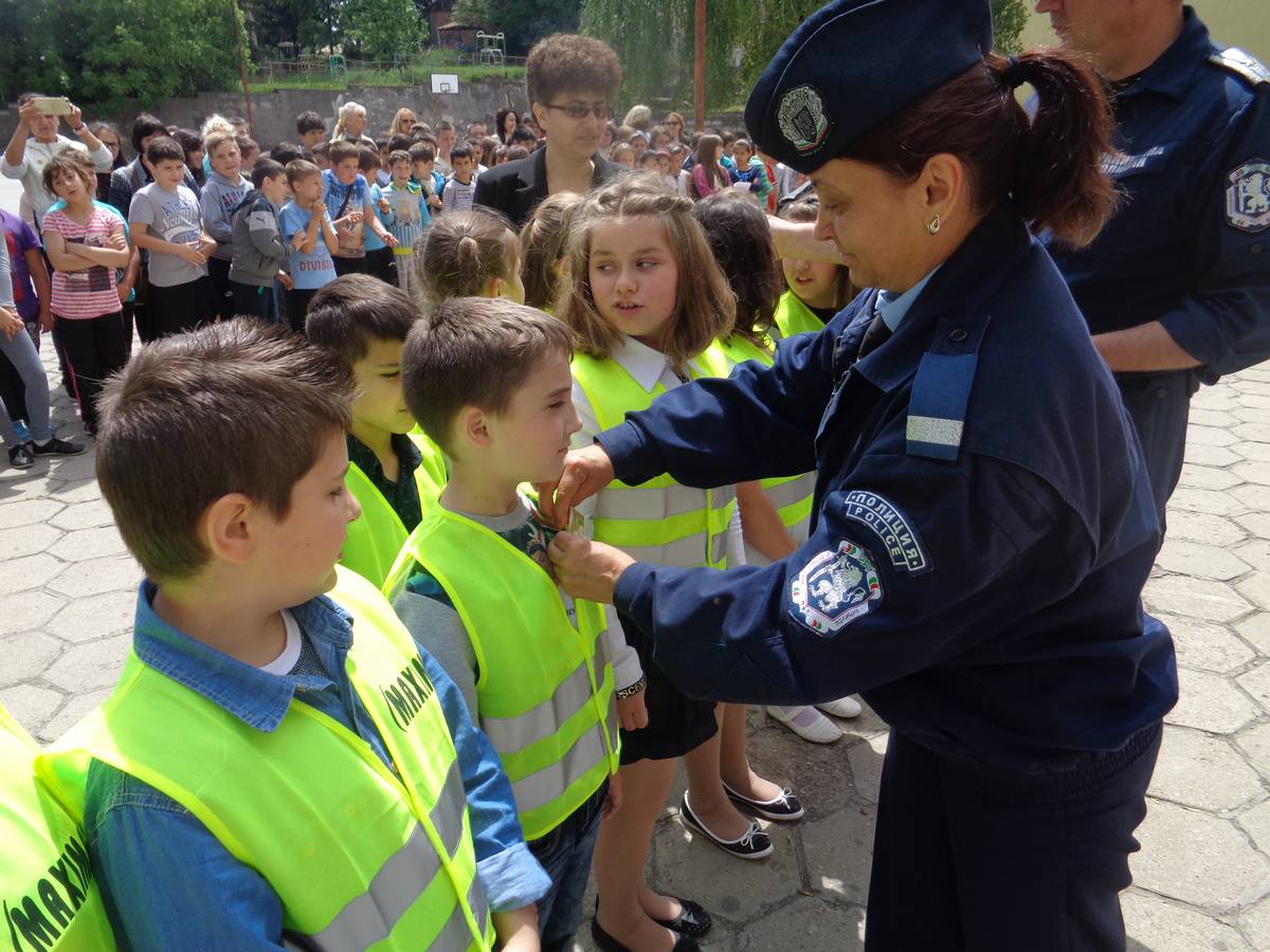 Директорът на училището г-н Генади Иванов и Гл. инспектор Момчил Златев, началник на РУ на МВР, подписаха Споразумение за партньорство, децата, произнесоха на висок глас Етичния кодекс на доброволеца, получиха своите отличителни знаци и се снимаха с официалните гости.