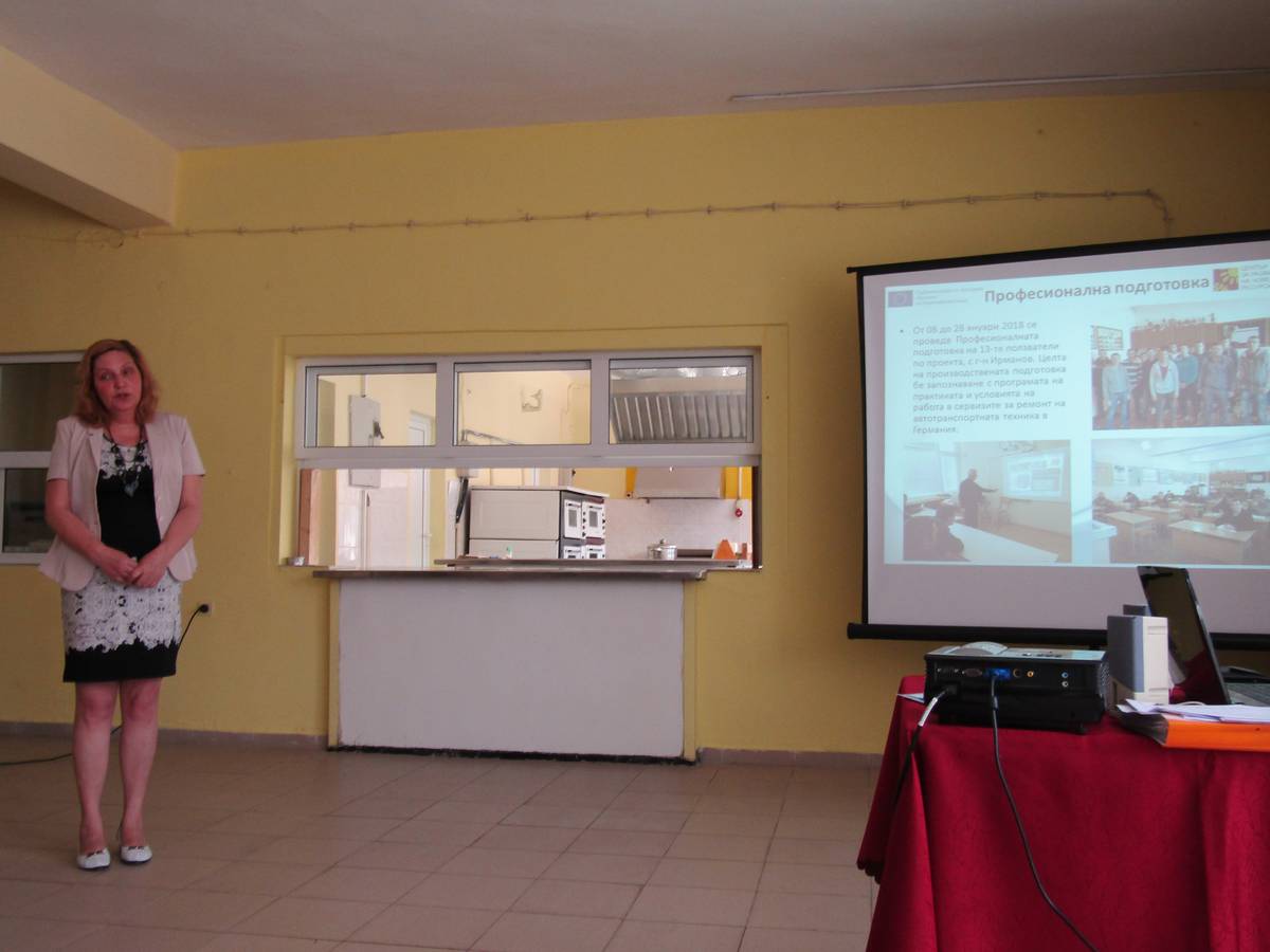 Директорът на СПГ „Алеко Константинов“ инж. Веска Николова представи целите и дейностите по реализирания за тази професия проект. След това тя представи и новия проект по програма Еразъм+, който гимназията спечели – „Обучение чрез работа за успешна професионална реализация”. Проектът предвижда изпълнението на четири мобилности: първа група – ученици от професия „Ресторантьор“, които ще проведат триседмична производствена практика в Римини, Италия през юли 2019 г.; втора група – ученици от професионално направления „Електротехника и енергетика“, които ще проведат триседмична производствена практика в Портсмут, Великобритания през април 2019 г.; и трета група ученици от професия „Оператор в дървообработването“ , на които им предстои триседмична производствена практика в Берлин, Германия през юли 2019 г. Четвъртата група включва осем педагогически специалисти по професионална подготовка, които ще проведат едноседмична мобилност също в Берлин, Германия през април 2019 г., с цел запознаване със специфичната методика на дуалното обучение.
